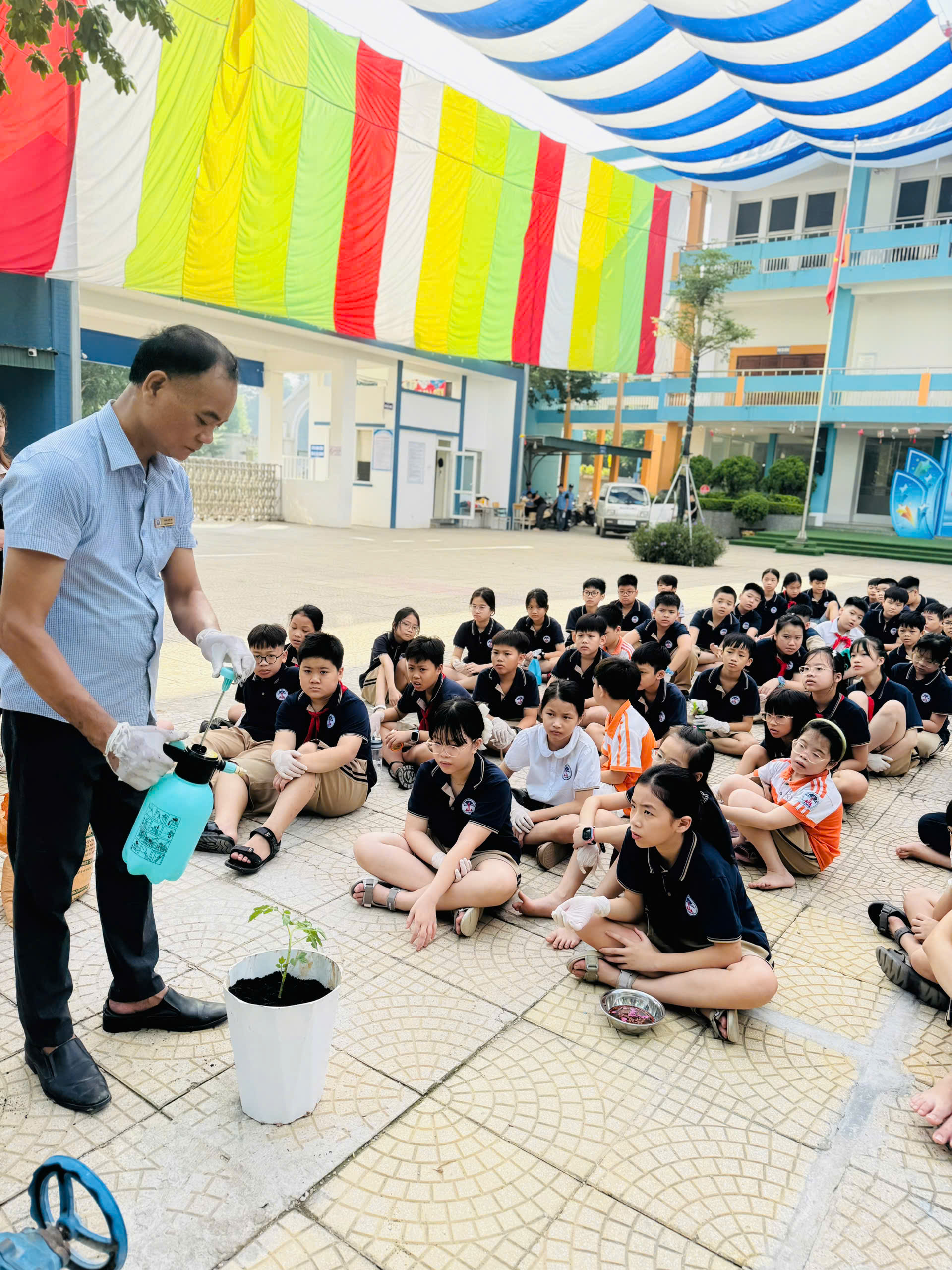 Dự án “Gieo mầm ước mơ bắt đầu từ ngày 18/10/2025, trải qua quá trình gieo hạt, chăm sóc và theo dõi sự phát triển của cây, đến ngày 20/10/2025, các nhóm học sinh đã hoàn tất toàn bộ các công đoạn. Những mầm cây xanh tươi giờ đây được chính thức gắn biển tên, đánh dấu sự trưởng thành của cây cũng như nỗ lực, tinh thần hợp tác và sáng tạo của các em.