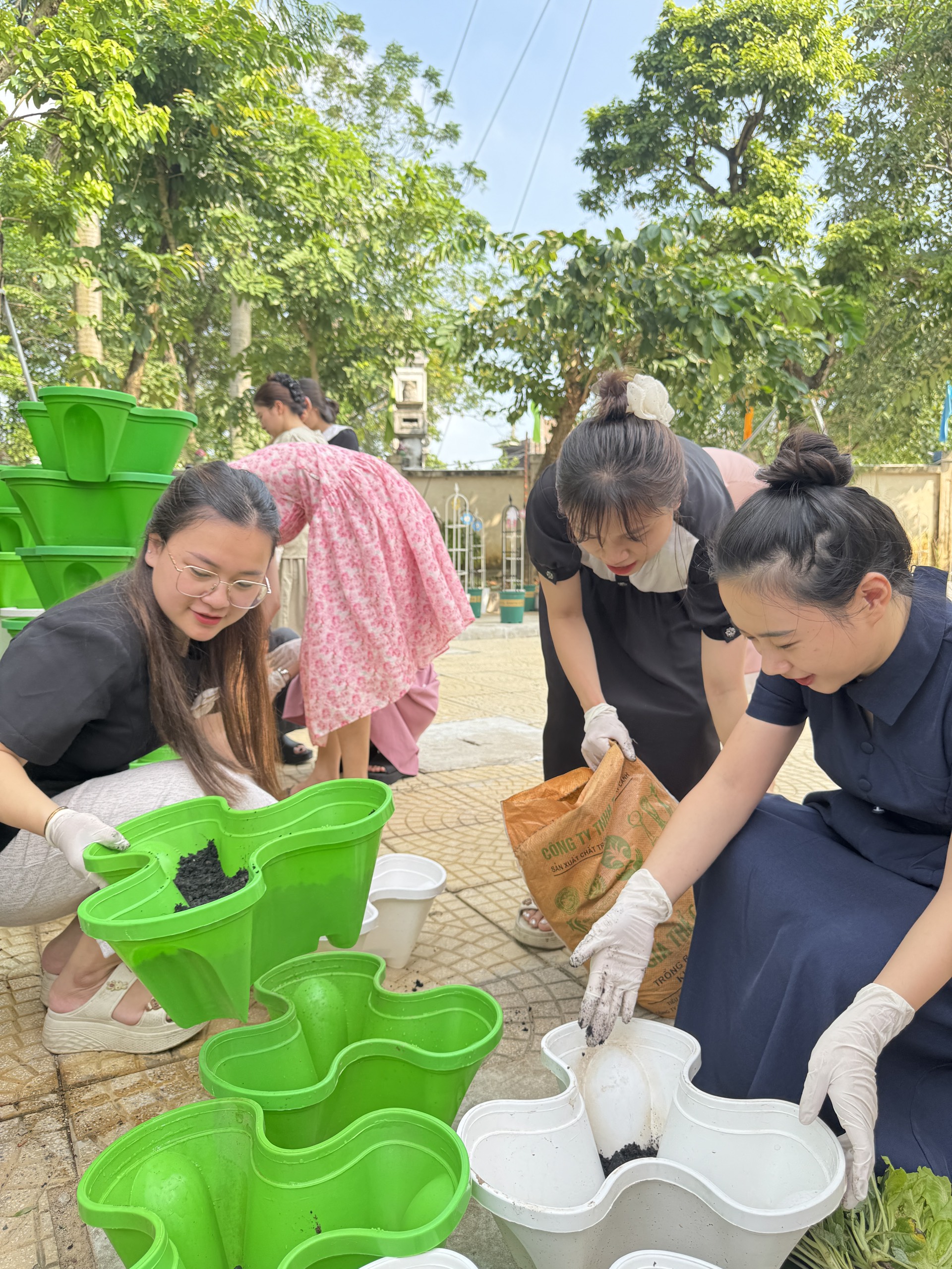 – Nhiều lớp đã sáng tạo trong việc trang trí khu vườn xanh, thiết kế bảng tên cho cây, và ghi nhật ký theo dõi sự phát triển hằng ngày.
