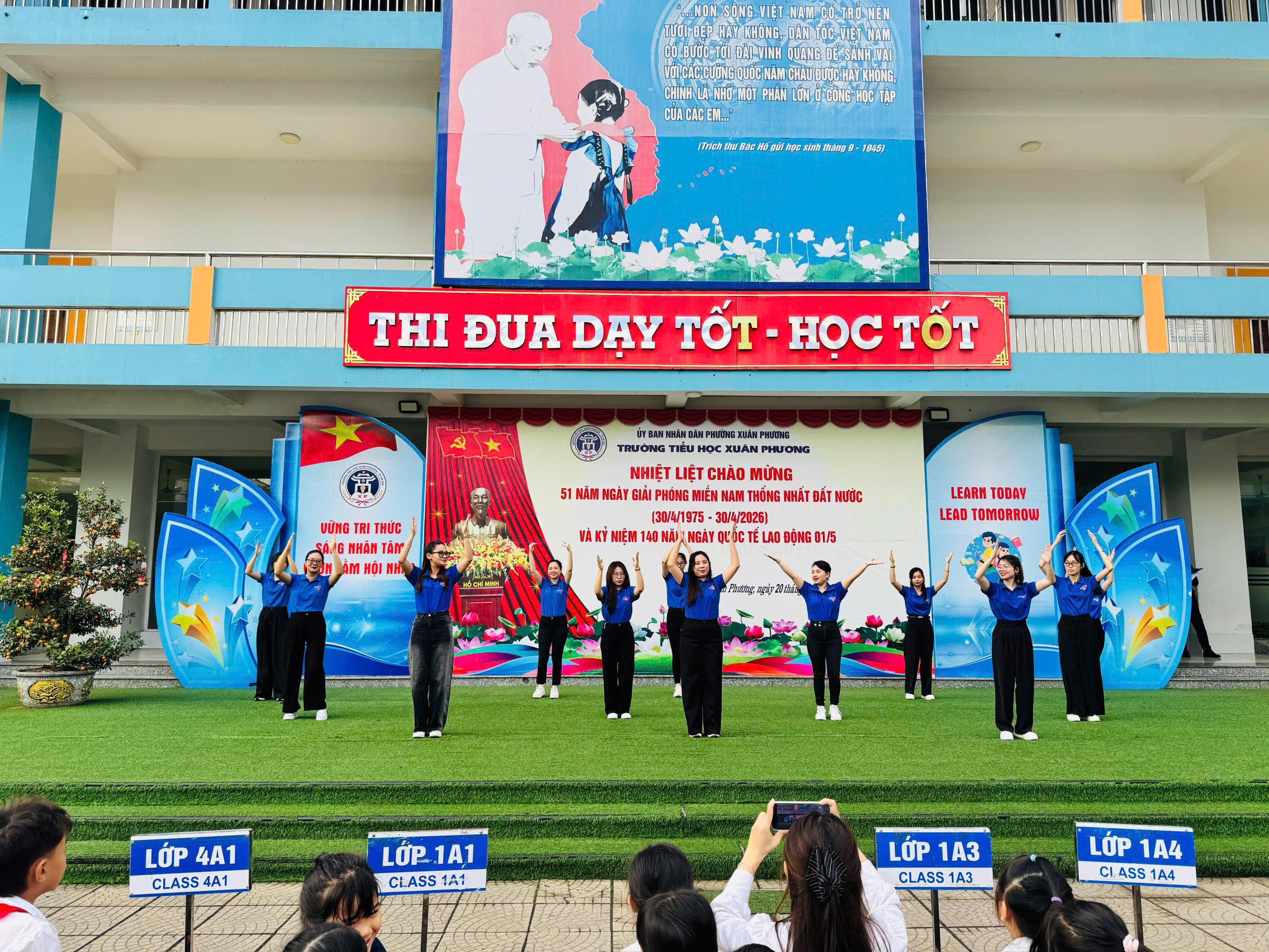 Thực hiện Chương trình công tác Đoàn và phong trào thanh thiếu nhi Thủ đô năm 2026, thiết thực Chào mừng kỉ niệm 51 năm Ngày Giải phóng miền Nam thống nhất đất nước (30/4/1975 – 30/4/2026), 140 năm Ngày Quốc tế Lao động (01/5/1886 – 01/5/2026), trường Tiểu học Xuân Phương long trọng tổ chức chương trình Chào mừng ngày chiến thắng 30/4 và ngày Quốc tế Lao động 1/5 với chủ đề: “Đất nước trọn niềm vui”.