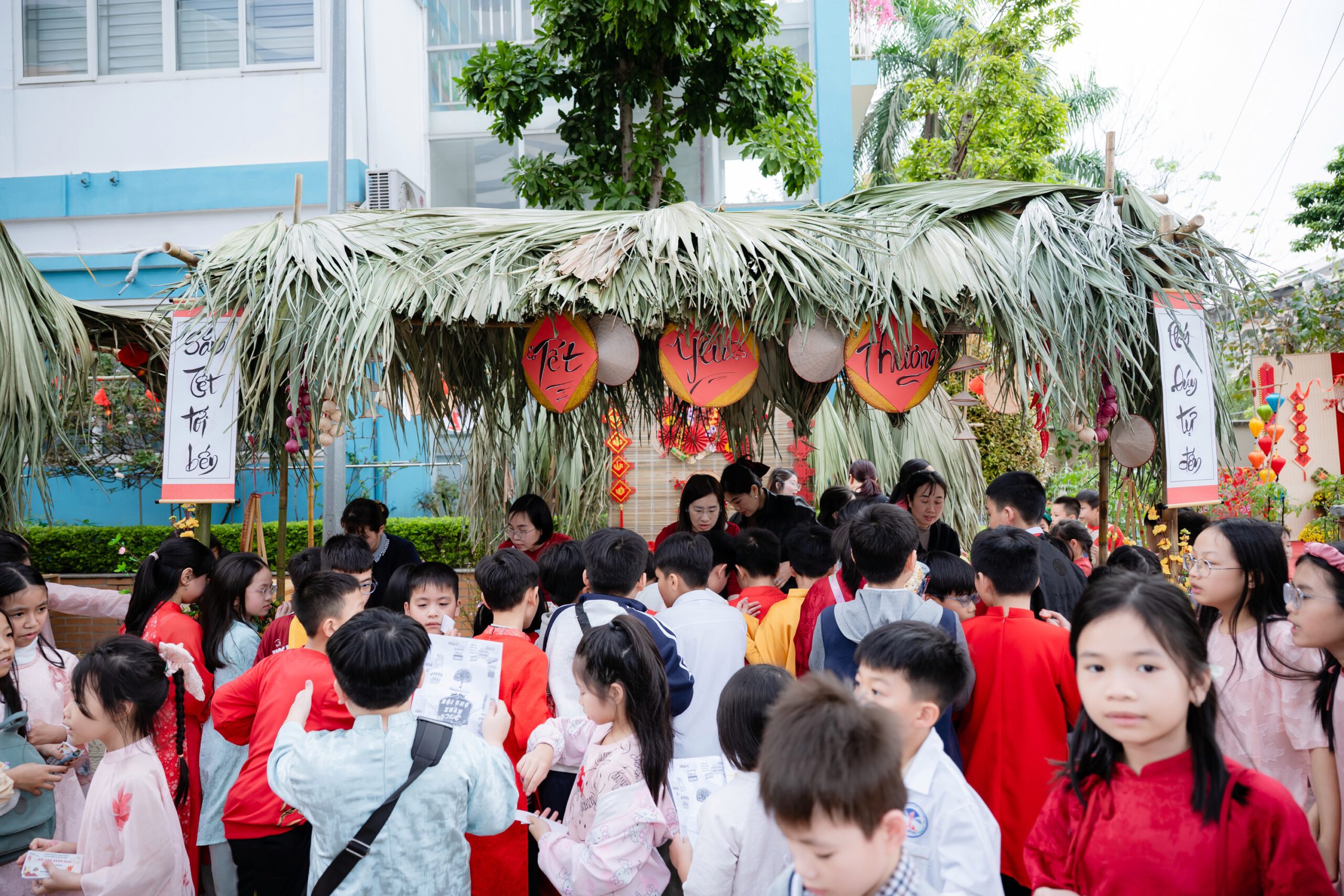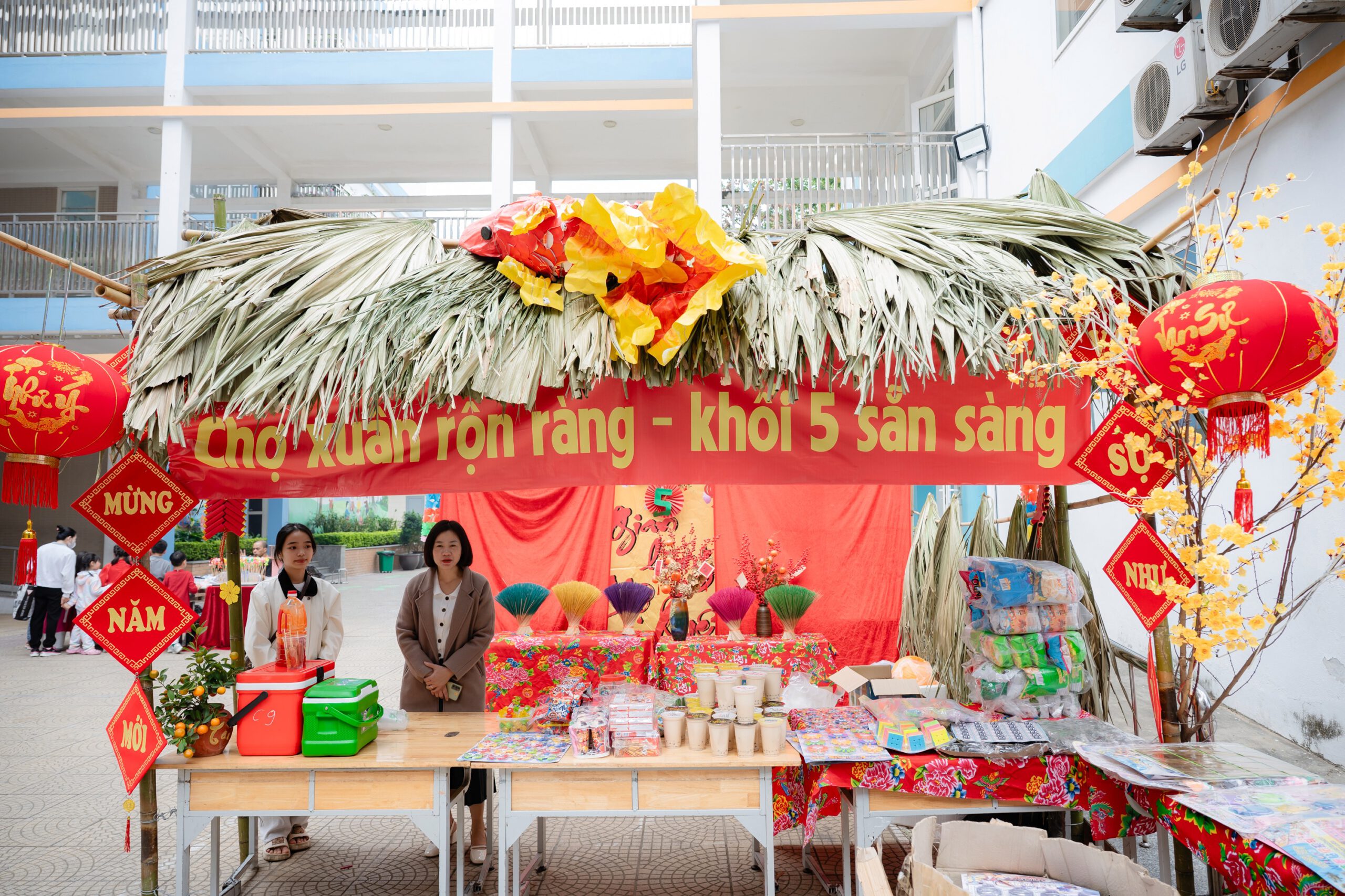 Khép lại chương trình là hoạt động được mong chờ nhất, tham quan và mua sắm tại các gian hàng Hội chợ Xuân. Các gian hàng được trang trí rực rỡ sắc xuân với nhiều mặt hàng phong phú như đồ thủ công, ẩm thực truyền thống, đồ dùng học tập, quà lưu niệm, các trò chơi dân gian,… Mỗi gian hàng không chỉ mang đến những trải nghiệm thú vị cho các em học sinh mà còn là nơi gắn kết thầy cô – phụ huynh – học sinh qua những khoảnh khắc sẻ chia, góp phần lan tỏa tinh thần “Vòng tay Yêu thương” trong ngày hội xuân ấm áp.