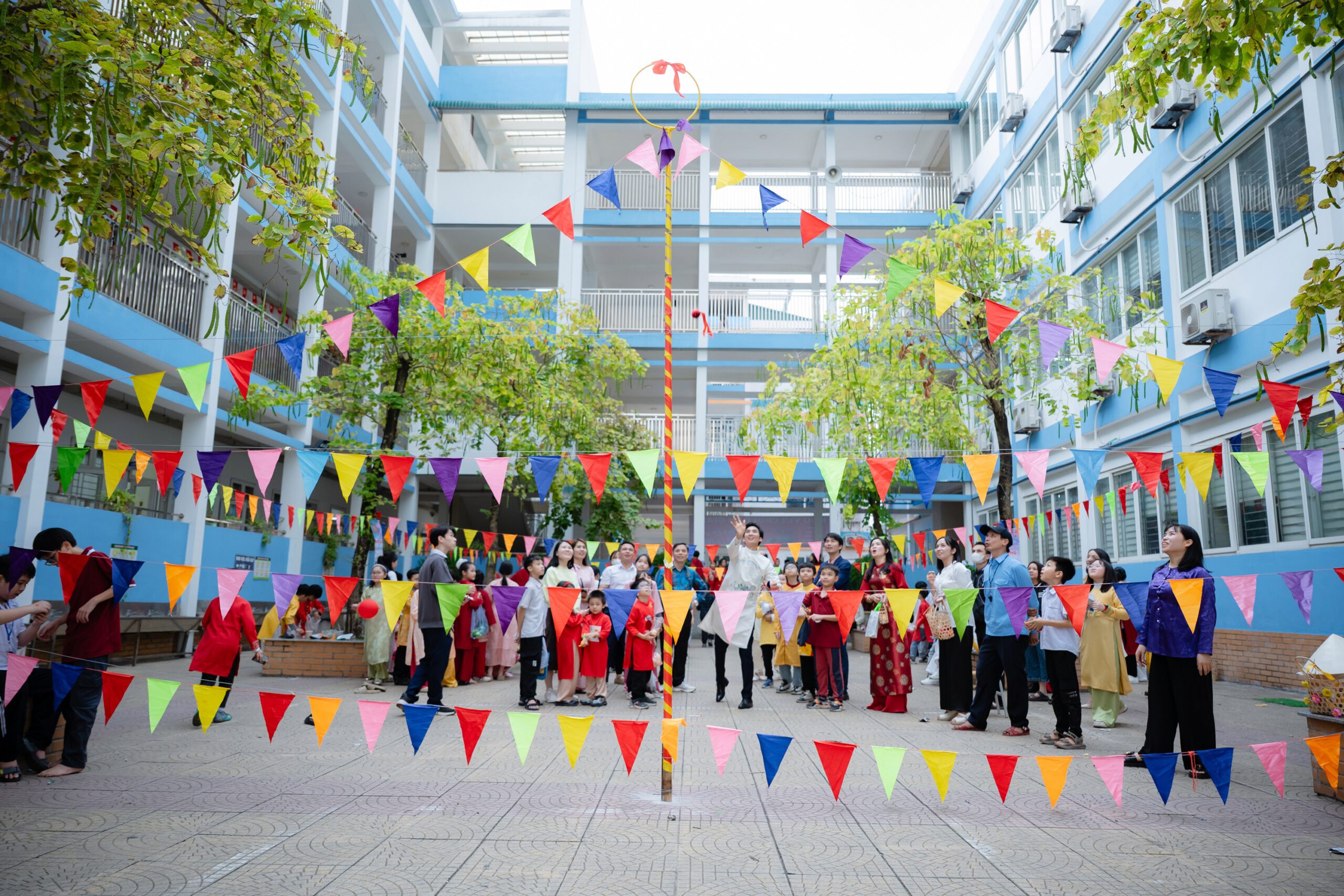 Xuân về, sân trường như khoác lên chiếc áo mới với tiếng cười rộn ràng, sắc màu ngập tràn và những “vòng tay yêu thương” nối dài.