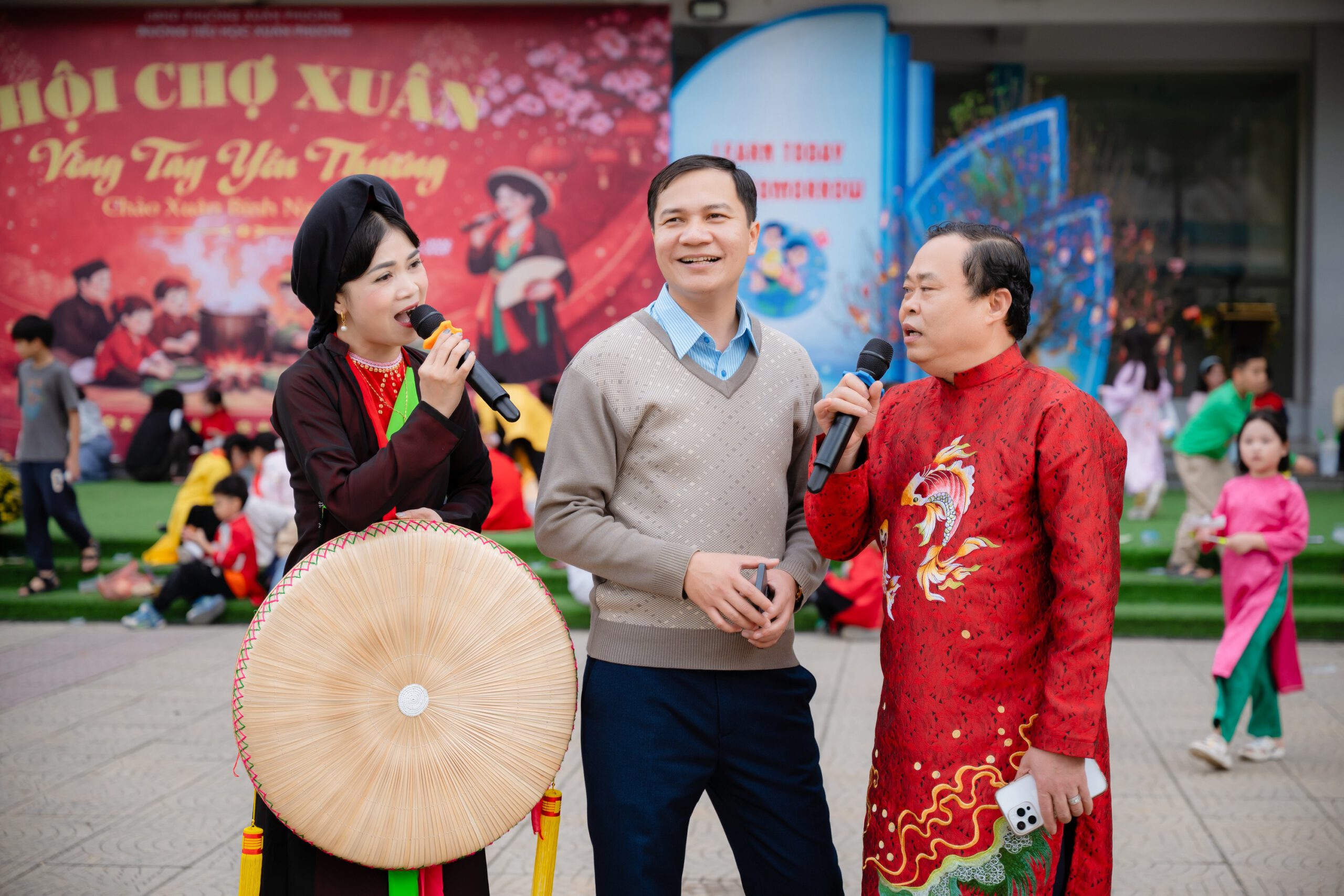 Chương trình càng thêm sôi động với phần giao lưu cùng “Anh Hai – Chị Hai” qua những làn điệu quan họ Bắc Ninh ngọt ngào, đằm thắm đã được UNESCO công nhận là di sản văn hóa phi vật thể đại diện của nhân loại vào ngày 30/9/2009. Tiếng hát mộc mạc mà sâu lắng đã đưa thầy cô, phụ huynh và các em học sinh đến gần hơn với nét đẹp văn hóa truyền thống, góp phần làm nên một không gian ngày hội xuân vừa rộn ràng, vừa giàu bản sắc.