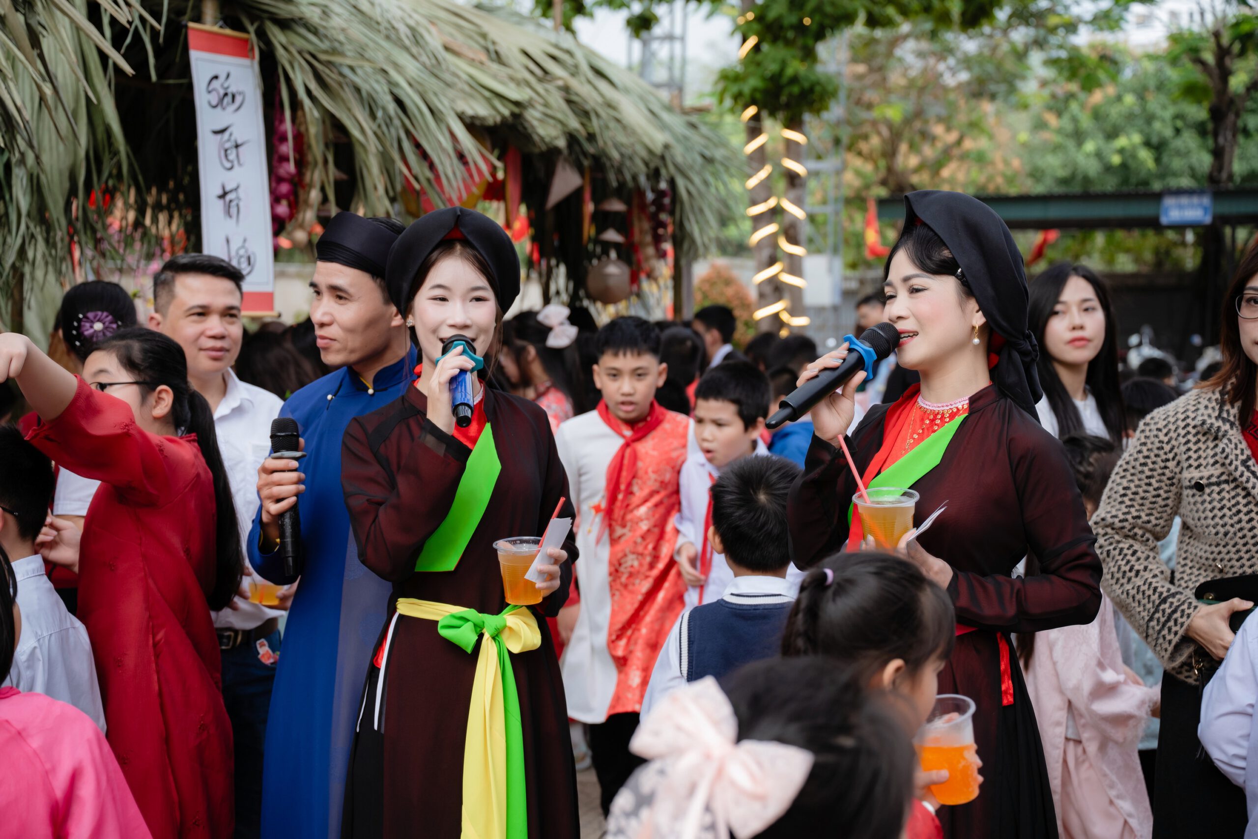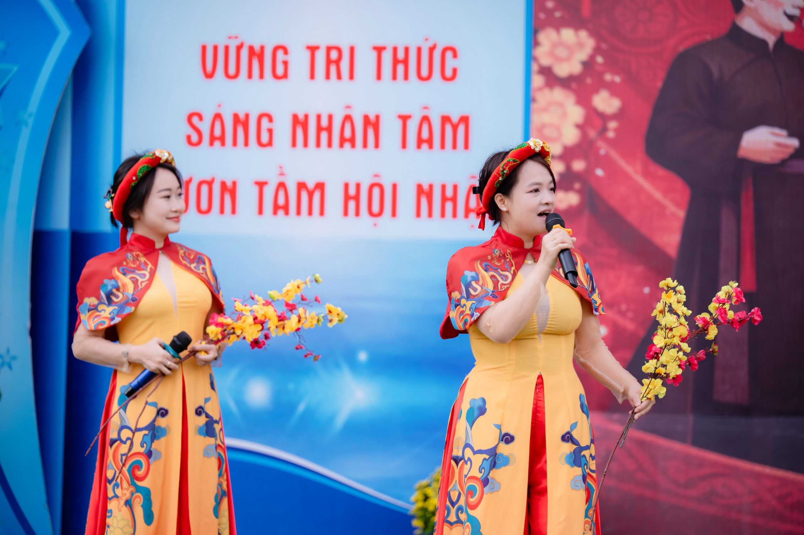 Chương trình càng thêm sôi động với phần giao lưu cùng “Anh Hai – Chị Hai” qua những làn điệu quan họ Bắc Ninh ngọt ngào, đằm thắm đã được UNESCO công nhận là di sản văn hóa phi vật thể đại diện của nhân loại vào ngày 30/9/2009. Tiếng hát mộc mạc mà sâu lắng đã đưa thầy cô, phụ huynh và các em học sinh đến gần hơn với nét đẹp văn hóa truyền thống, góp phần làm nên một không gian ngày hội xuân vừa rộn ràng, vừa giàu bản sắc.