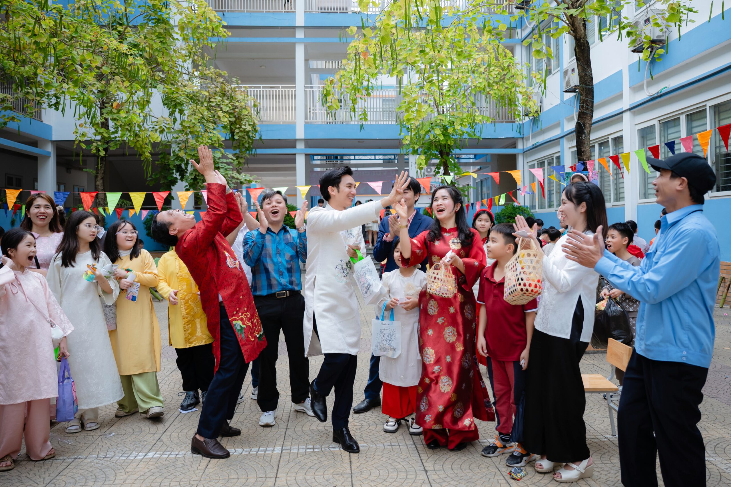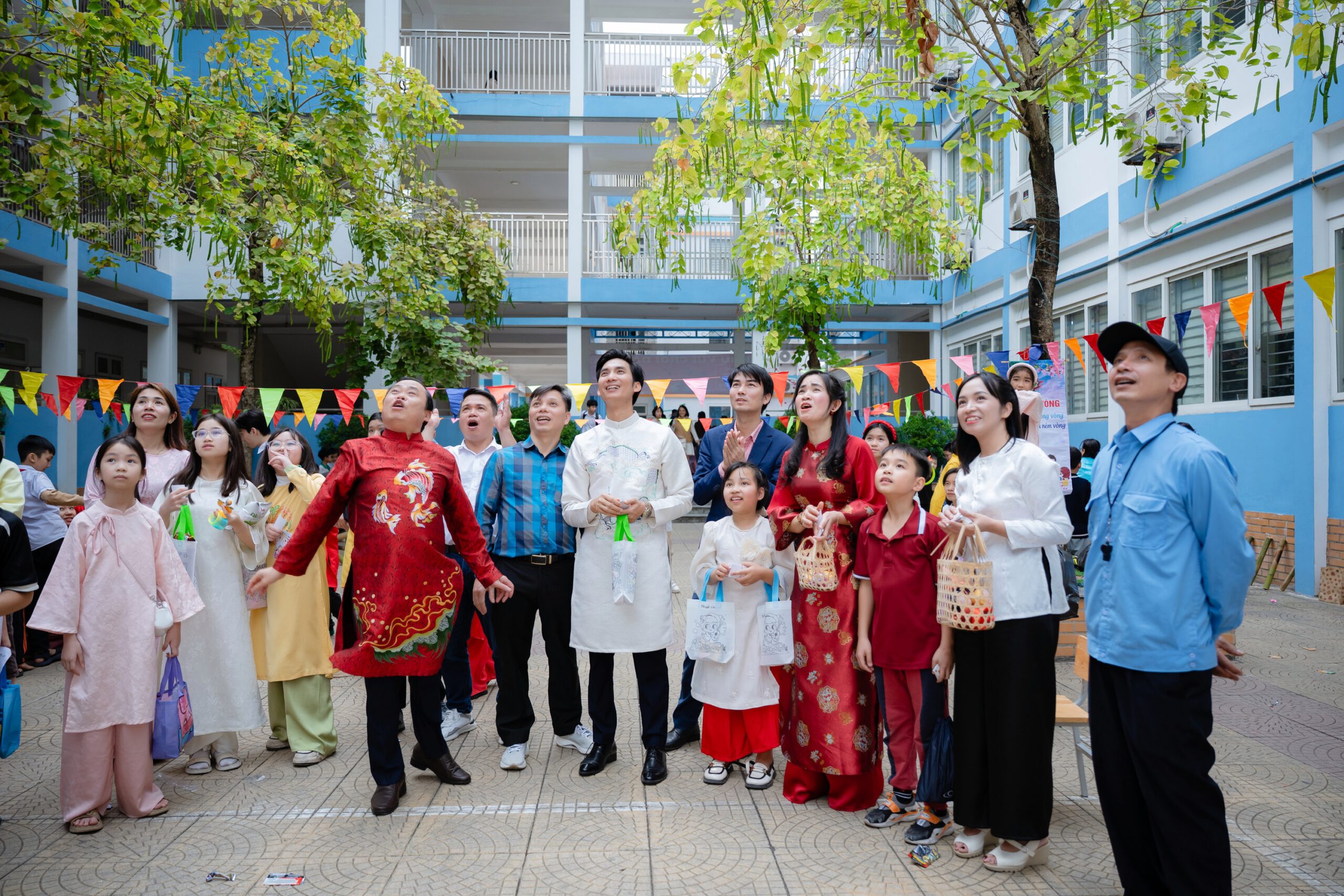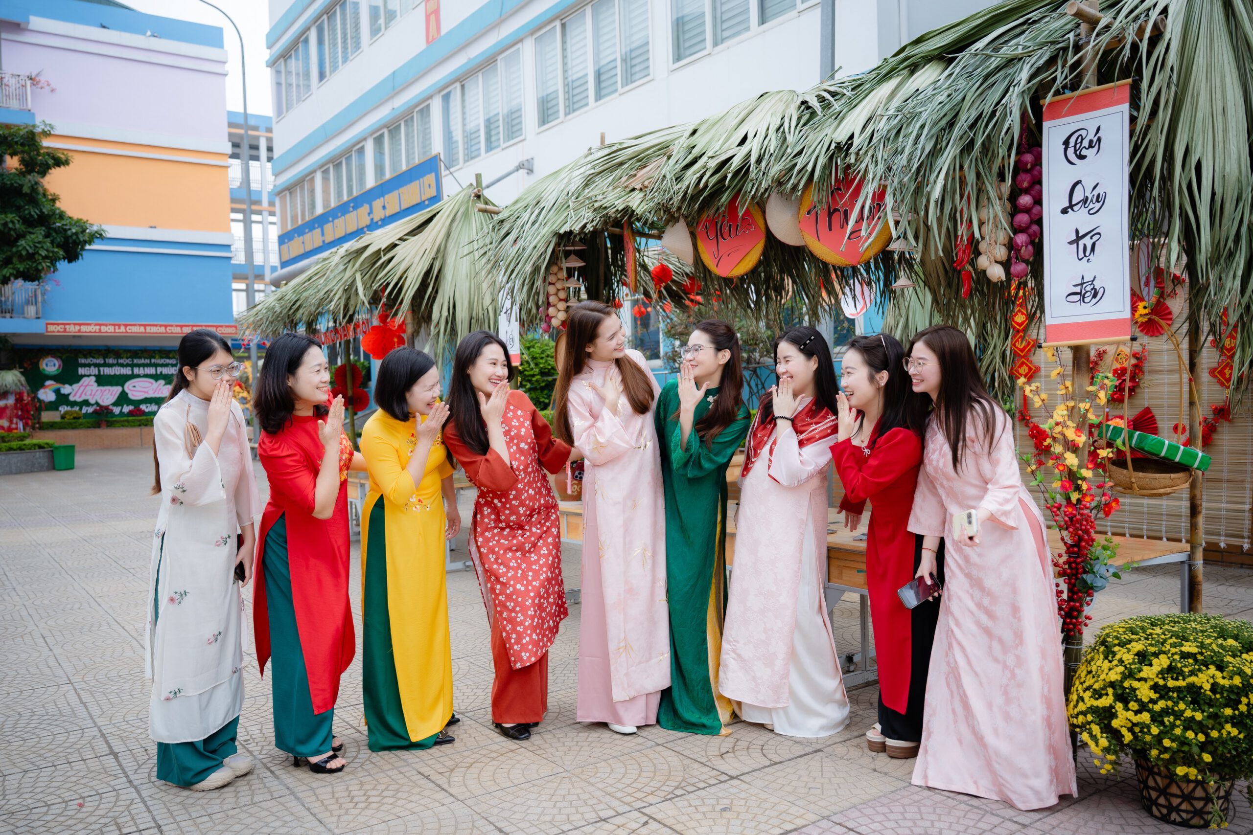 Xuân về, sân trường như khoác lên chiếc áo mới với tiếng cười rộn ràng, sắc màu ngập tràn và những “vòng tay yêu thương” nối dài.