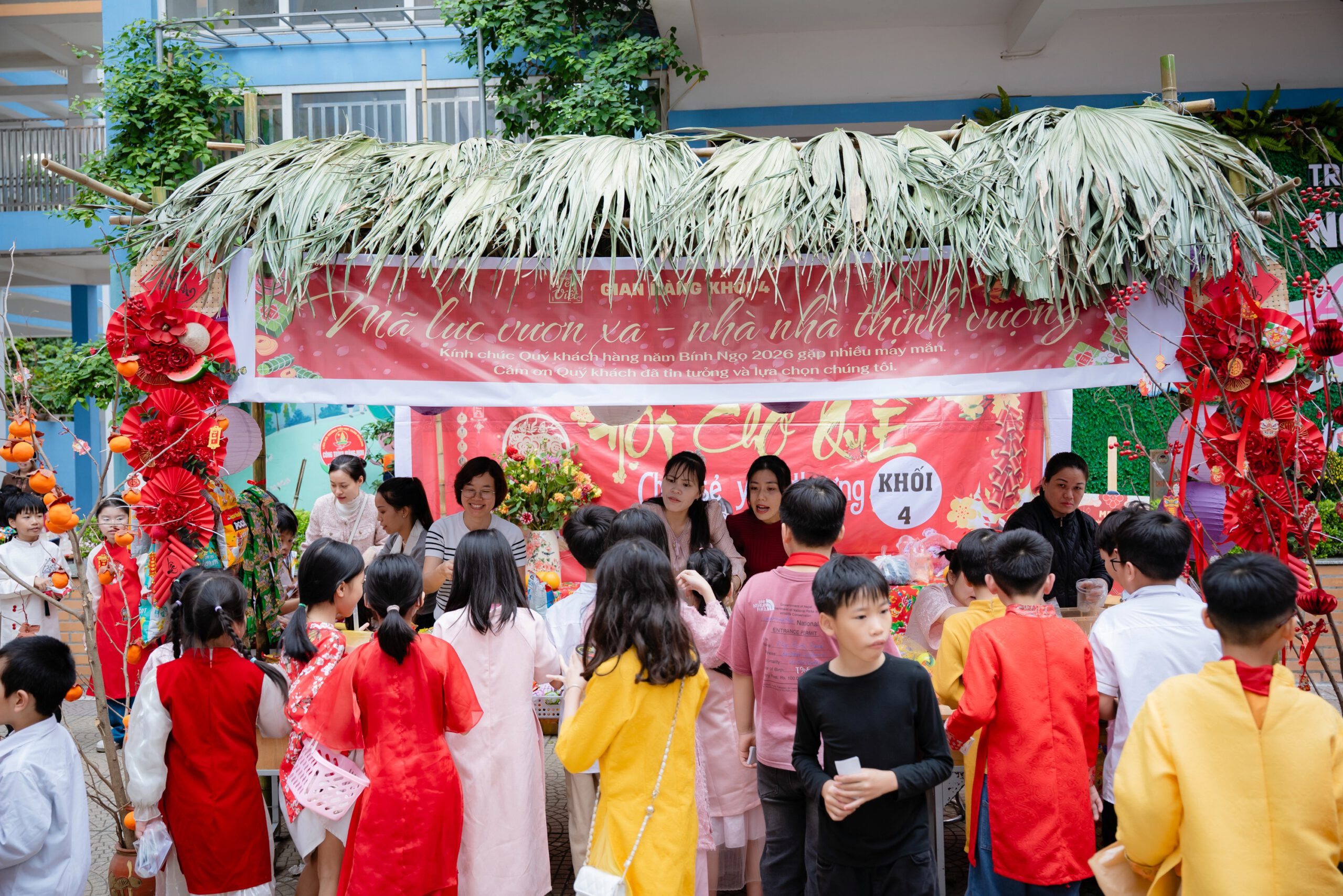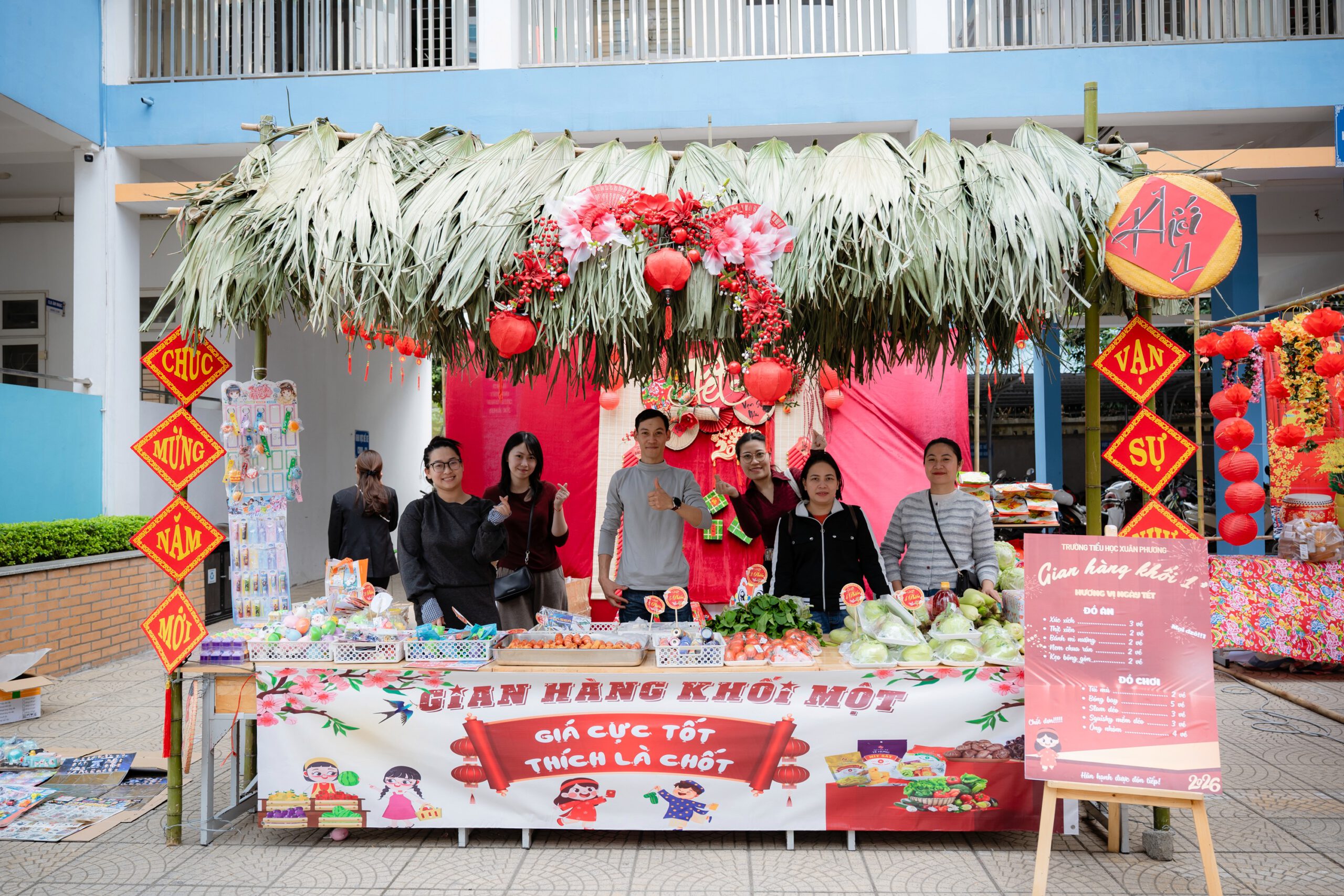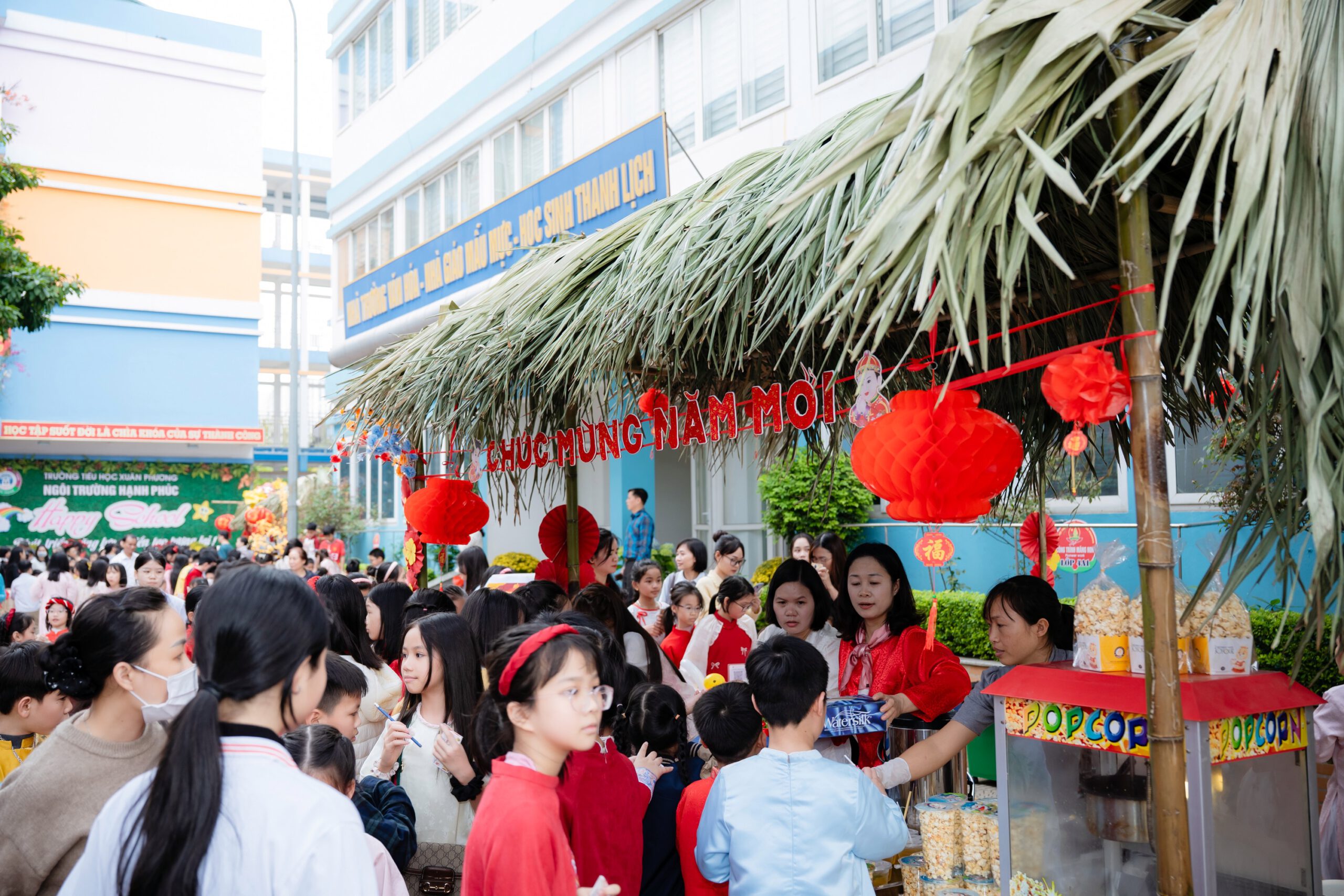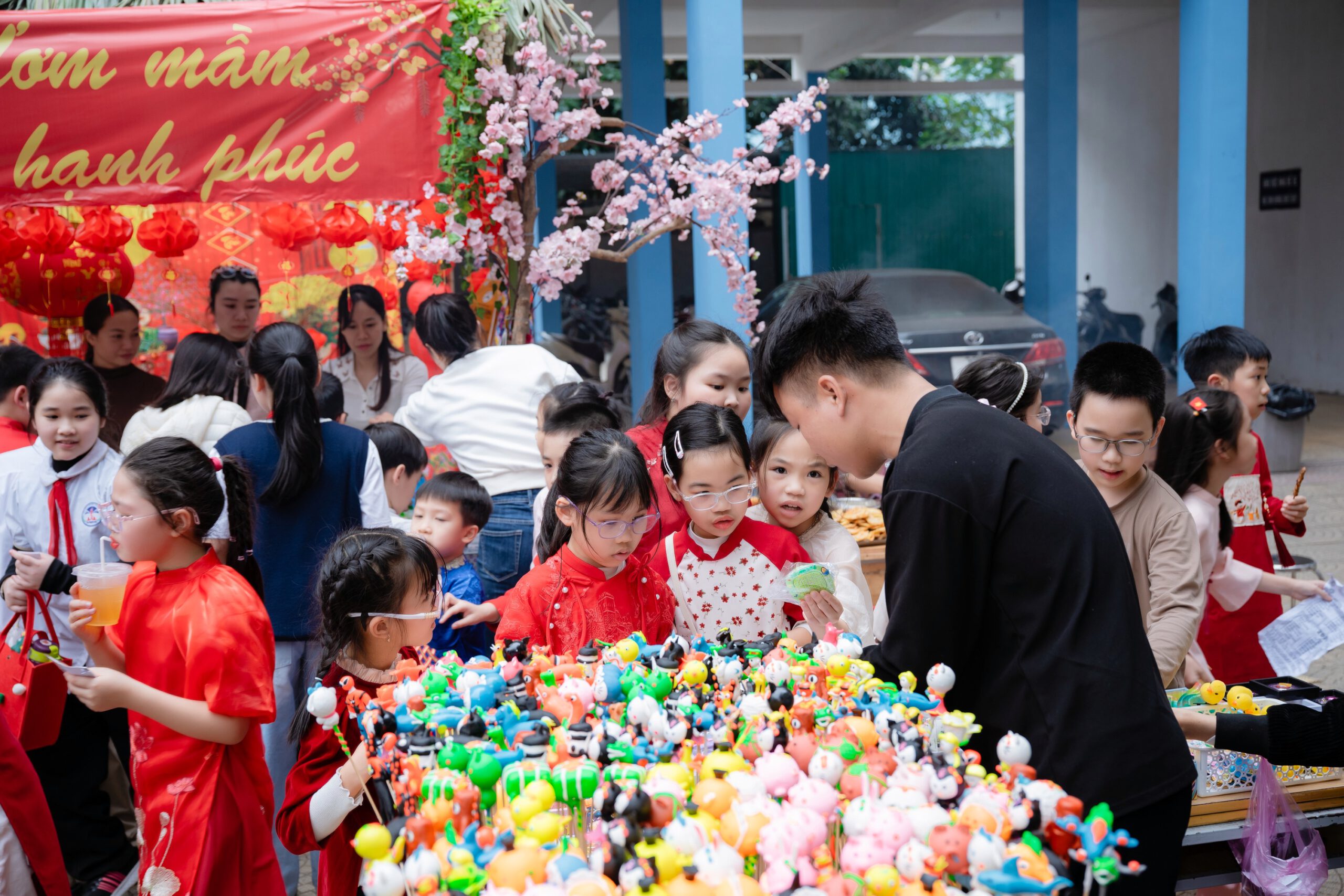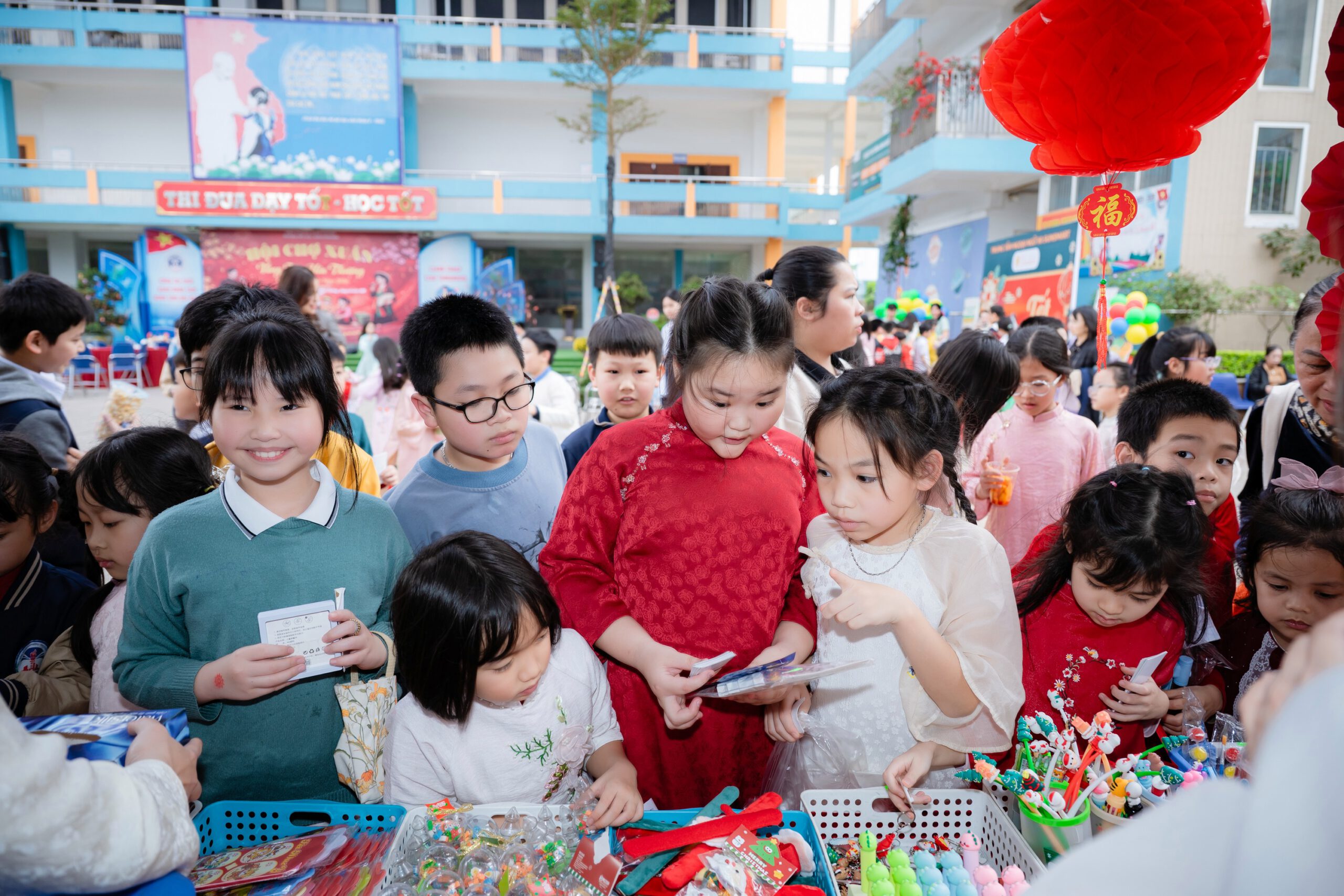 Khép lại chương trình là hoạt động được mong chờ nhất, tham quan và mua sắm tại các gian hàng Hội chợ Xuân. Các gian hàng được trang trí rực rỡ sắc xuân với nhiều mặt hàng phong phú như đồ thủ công, ẩm thực truyền thống, đồ dùng học tập, quà lưu niệm, các trò chơi dân gian,… Mỗi gian hàng không chỉ mang đến những trải nghiệm thú vị cho các em học sinh mà còn là nơi gắn kết thầy cô – phụ huynh – học sinh qua những khoảnh khắc sẻ chia, góp phần lan tỏa tinh thần “Vòng tay Yêu thương” trong ngày hội xuân ấm áp.