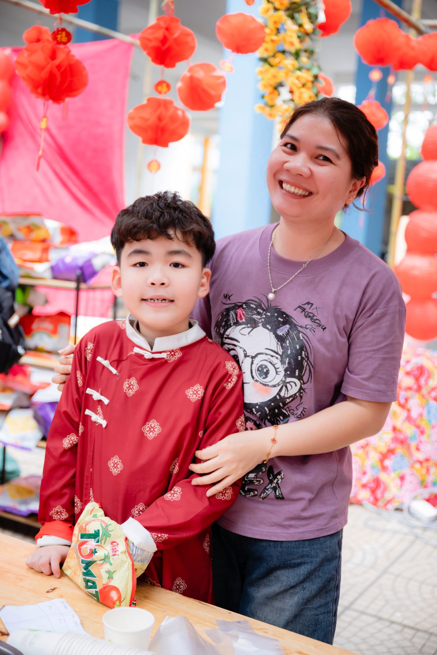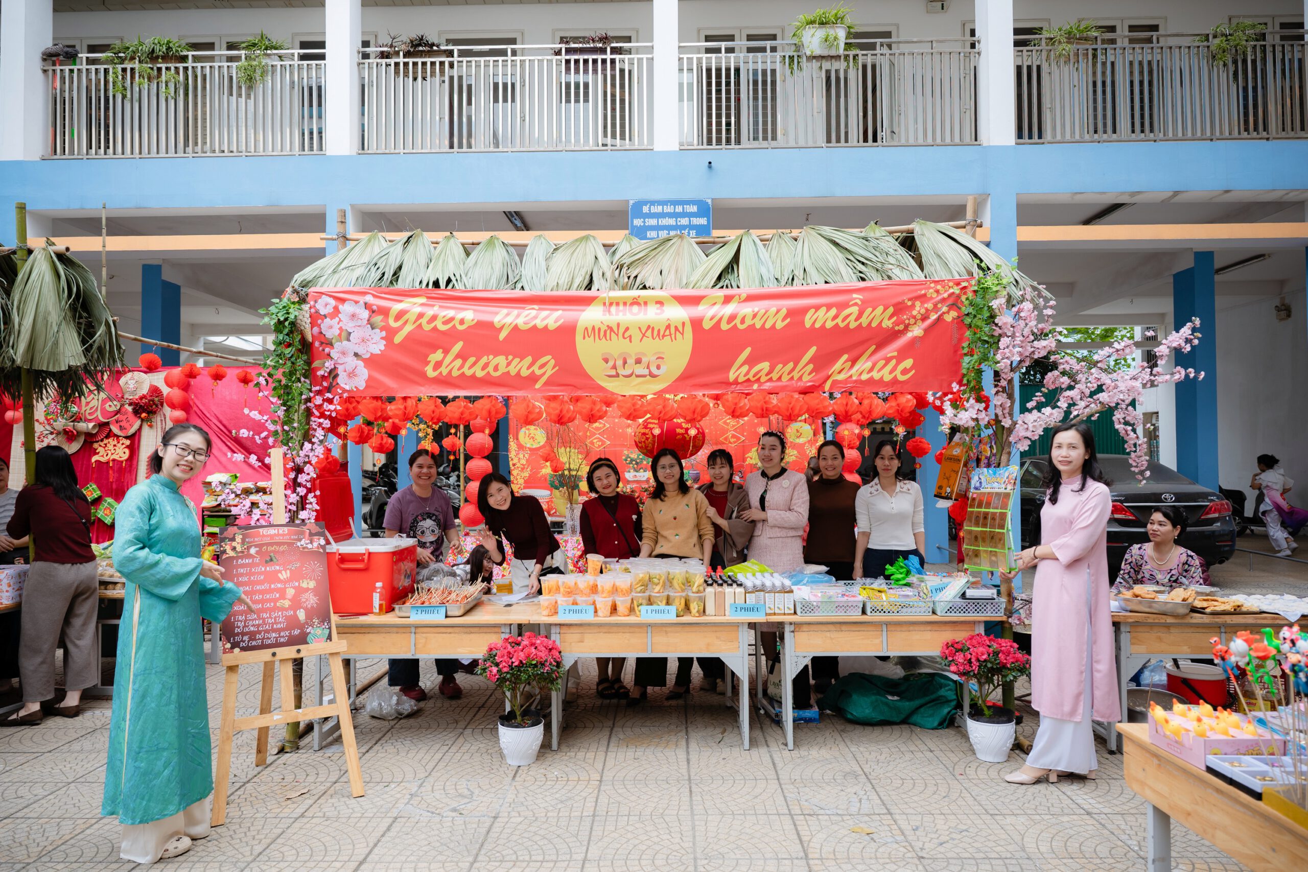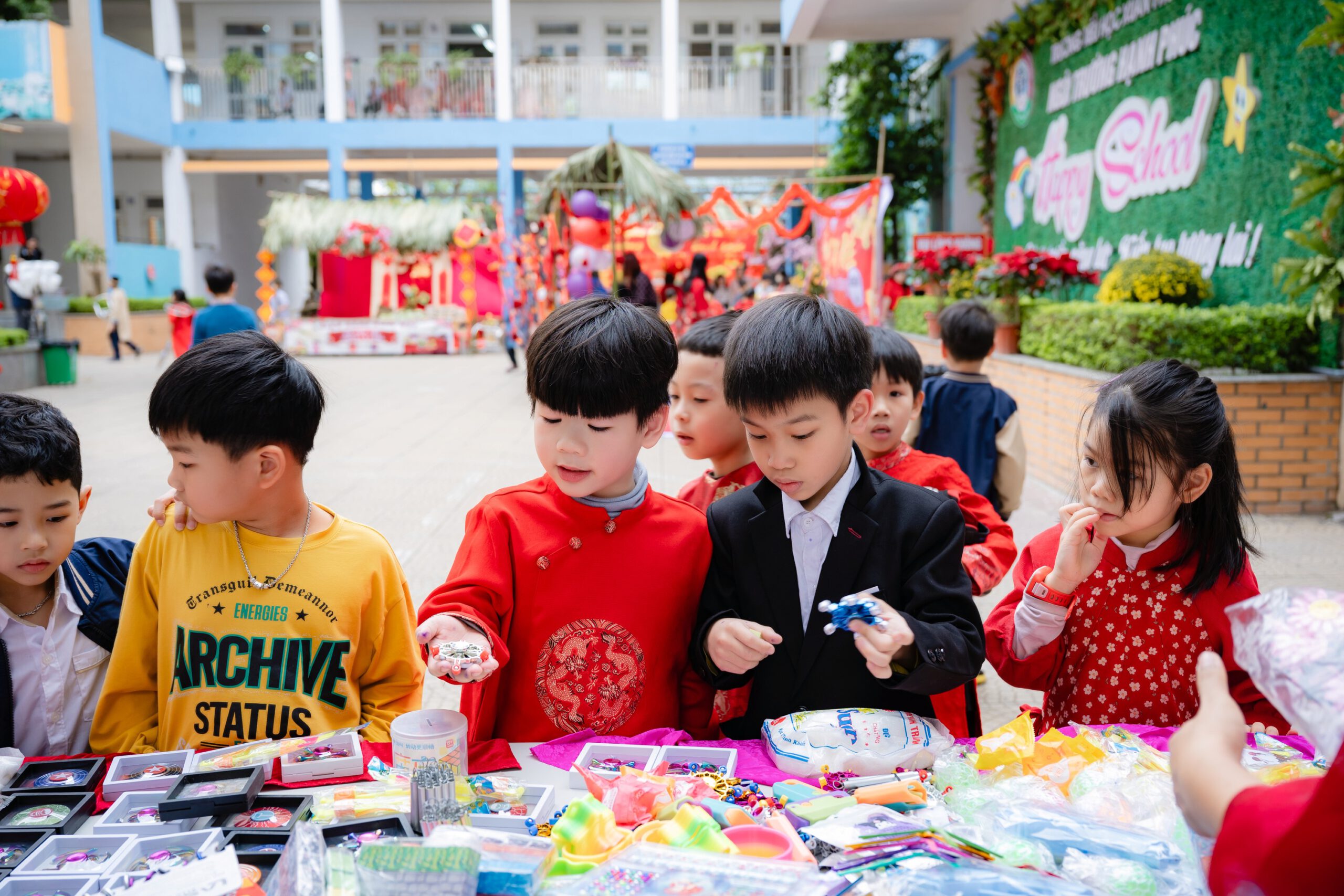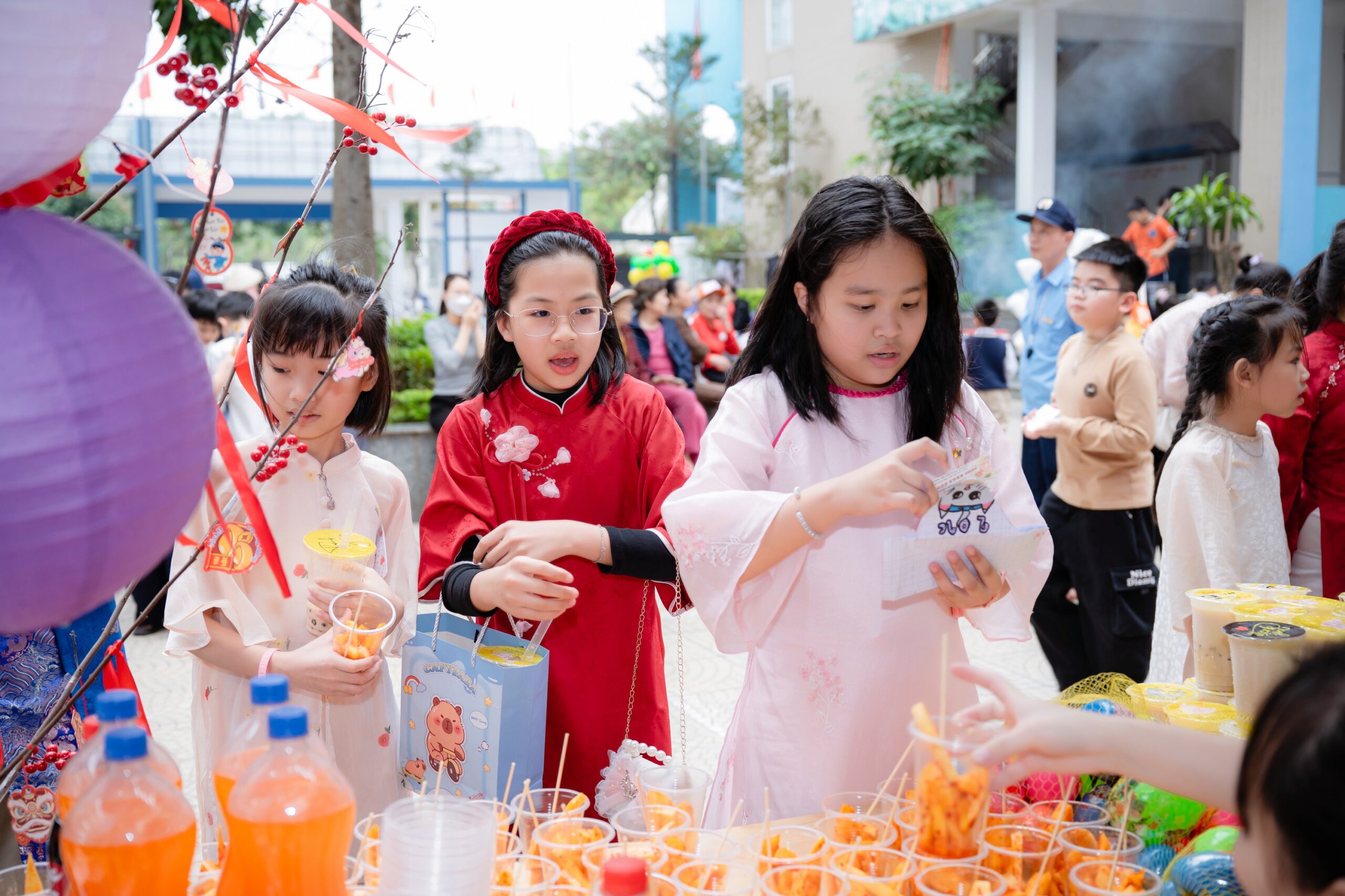 Khép lại chương trình là hoạt động được mong chờ nhất, tham quan và mua sắm tại các gian hàng Hội chợ Xuân. Các gian hàng được trang trí rực rỡ sắc xuân với nhiều mặt hàng phong phú như đồ thủ công, ẩm thực truyền thống, đồ dùng học tập, quà lưu niệm, các trò chơi dân gian,… Mỗi gian hàng không chỉ mang đến những trải nghiệm thú vị cho các em học sinh mà còn là nơi gắn kết thầy cô – phụ huynh – học sinh qua những khoảnh khắc sẻ chia, góp phần lan tỏa tinh thần “Vòng tay Yêu thương” trong ngày hội xuân ấm áp.