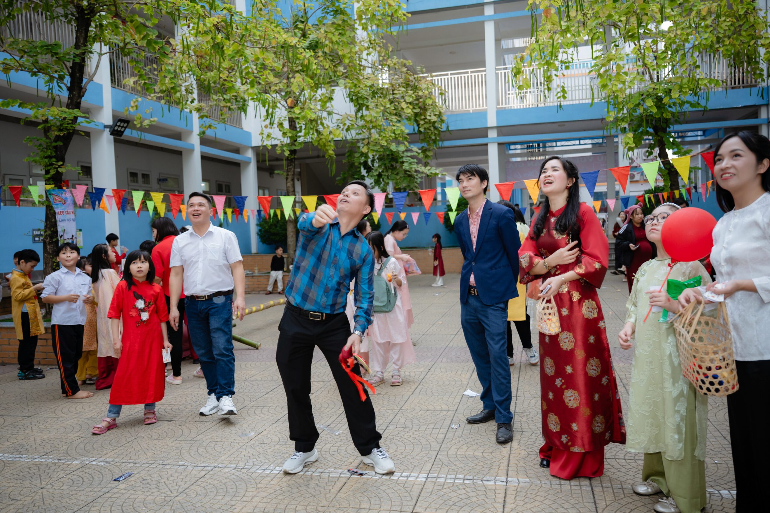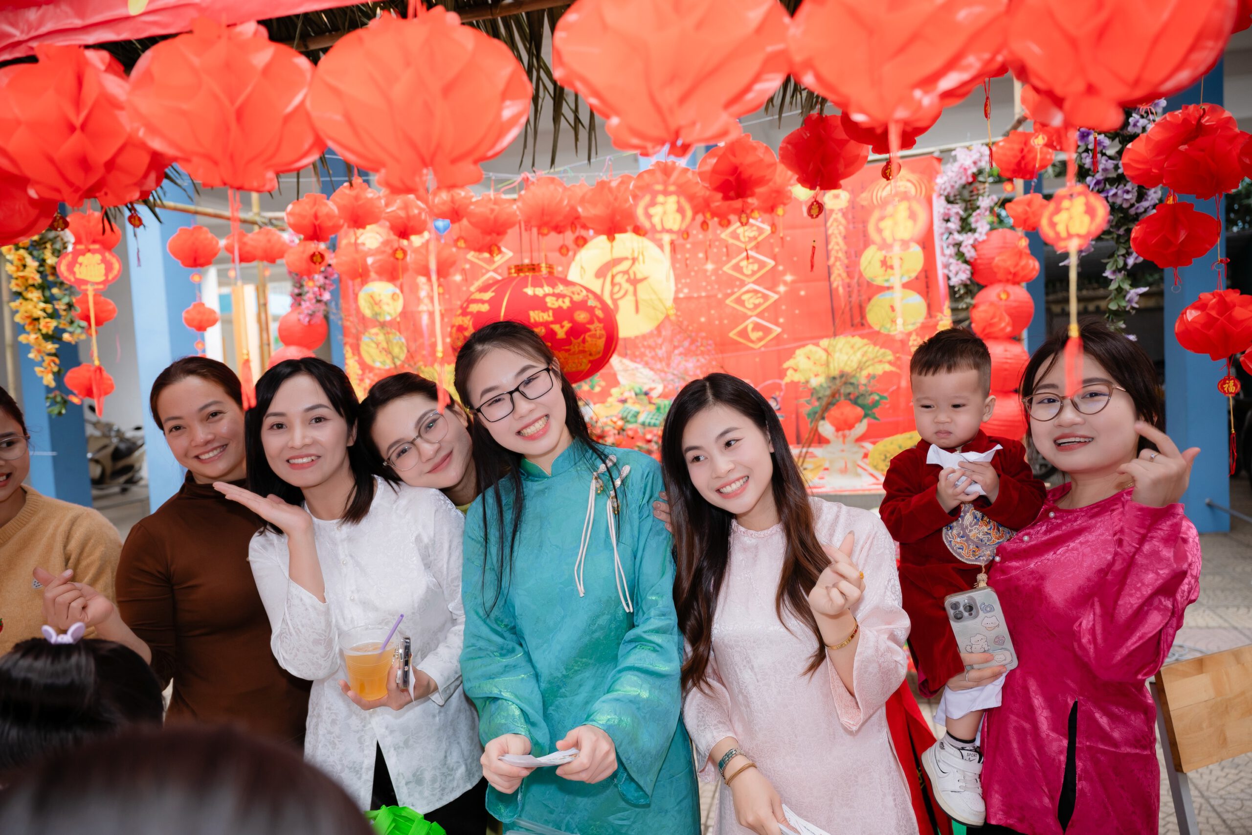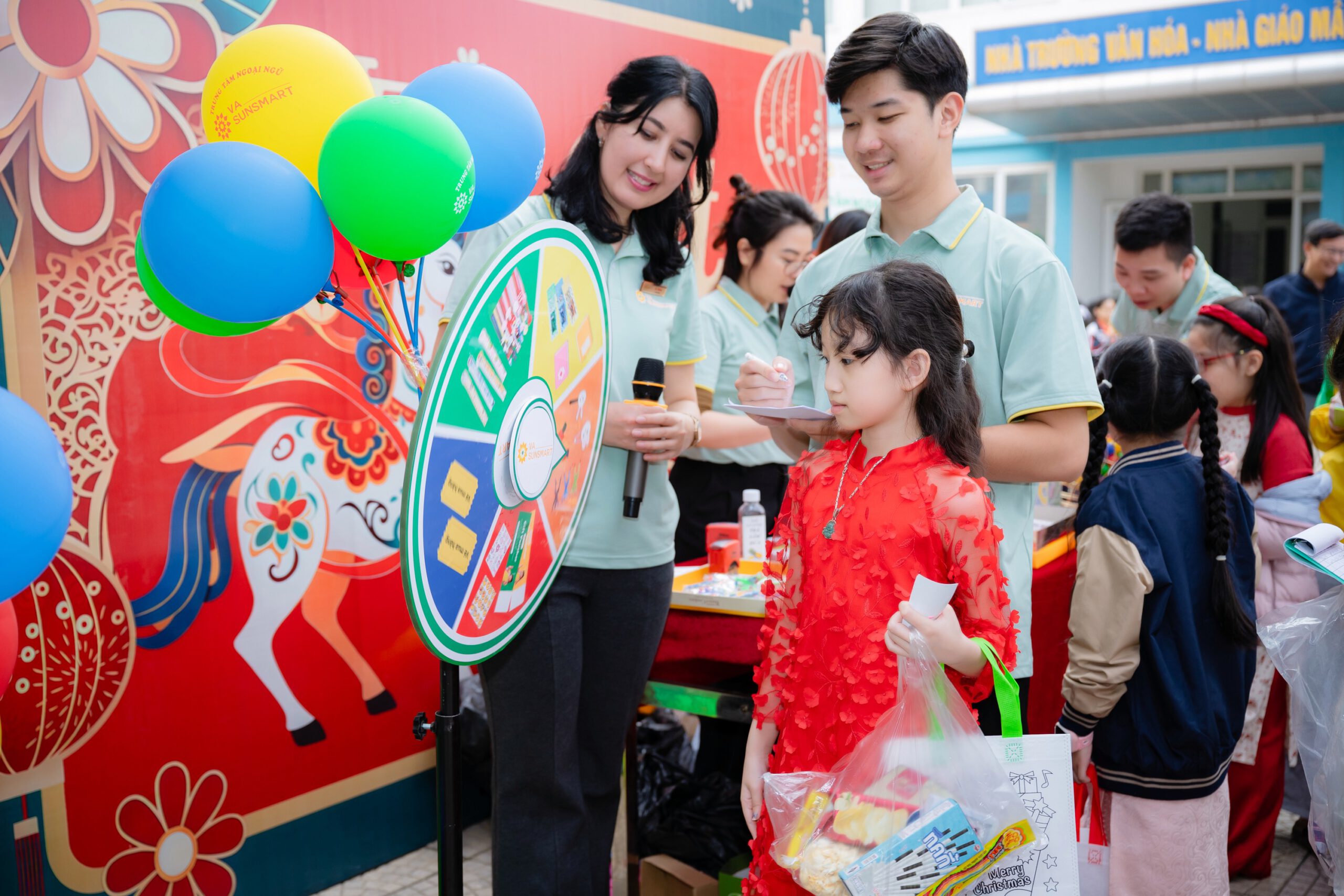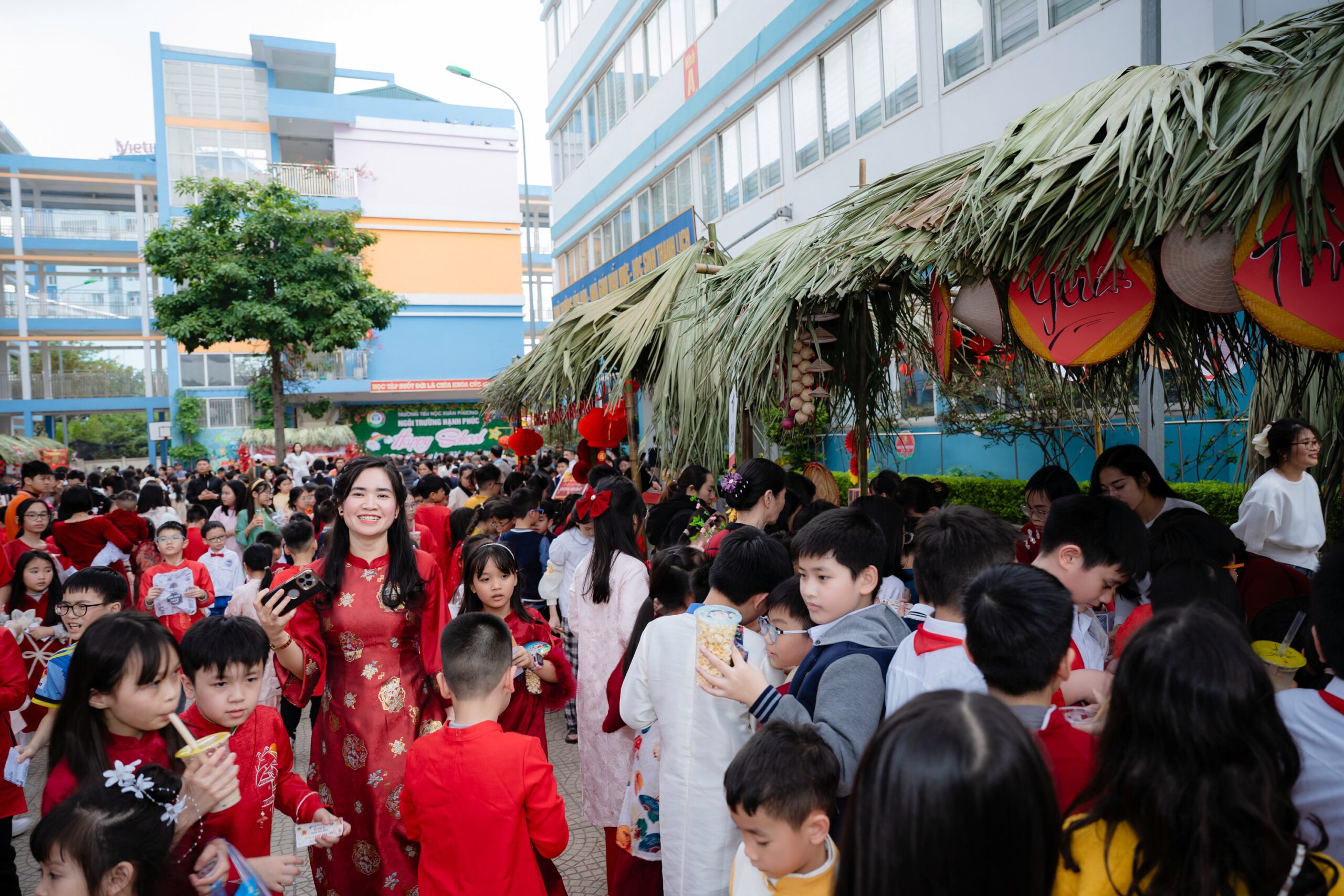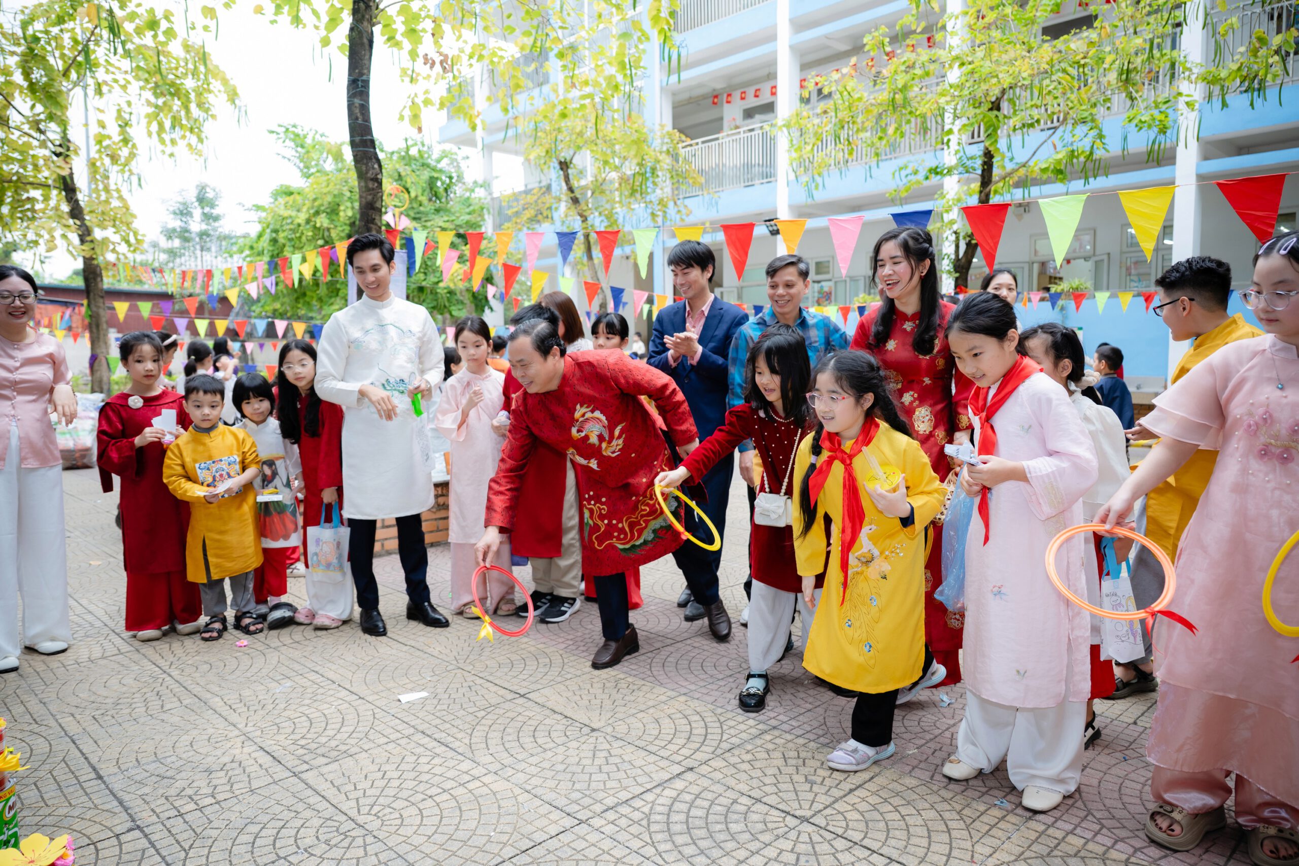 Khép lại chương trình là hoạt động được mong chờ nhất, tham quan và mua sắm tại các gian hàng Hội chợ Xuân. Các gian hàng được trang trí rực rỡ sắc xuân với nhiều mặt hàng phong phú như đồ thủ công, ẩm thực truyền thống, đồ dùng học tập, quà lưu niệm, các trò chơi dân gian,… Mỗi gian hàng không chỉ mang đến những trải nghiệm thú vị cho các em học sinh mà còn là nơi gắn kết thầy cô – phụ huynh – học sinh qua những khoảnh khắc sẻ chia, góp phần lan tỏa tinh thần “Vòng tay Yêu thương” trong ngày hội xuân ấm áp.