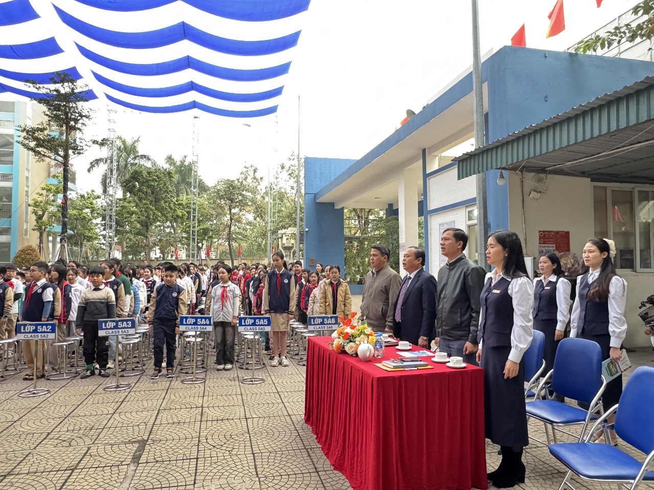 Buổi Lễ diễn ra trong không khí trang nghiêm, phấn khởi, với sự tham dự của Ban Giám hiệu nhà trường, Ban Đại diện Cha mẹ học sinh, cùng toàn thể cán bộ, giáo viên, nhân viên và học sinh toàn trường.