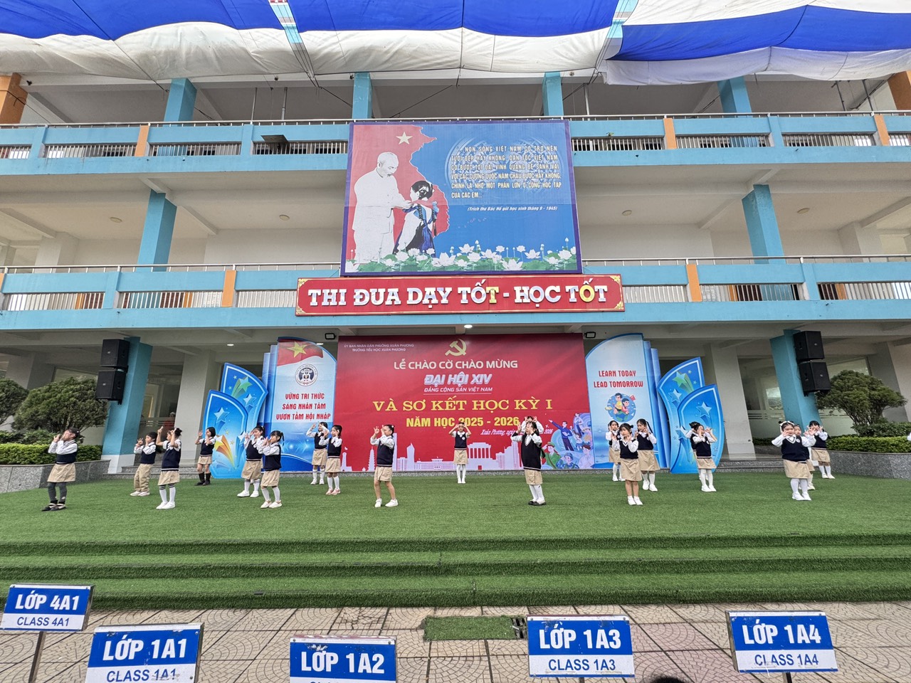 Lễ chào cờ chào mừng Đại hội XIV Đảng Cộng sản Việt Nam và Sơ kết Học kì I năm học 2025 – 2026 đã diễn ra thành công tốt đẹp, để lại nhiều ấn tượng sâu sắc. Đây là dịp để nhà trường nhìn lại chặng đường đã qua, khẳng định những kết quả đạt được, đồng thời tiếp thêm động lực để thầy và trò bước vào Học kì II với tinh thần đoàn kết, trách nhiệm, quyết tâm lập thành tích cao nhất chào mừng Đại hội XIV của Đảng Cộng sản Việt Nam và phấn đấu hoàn thành xuất sắc nhiệm vụ năm học 2025 – 2026.
