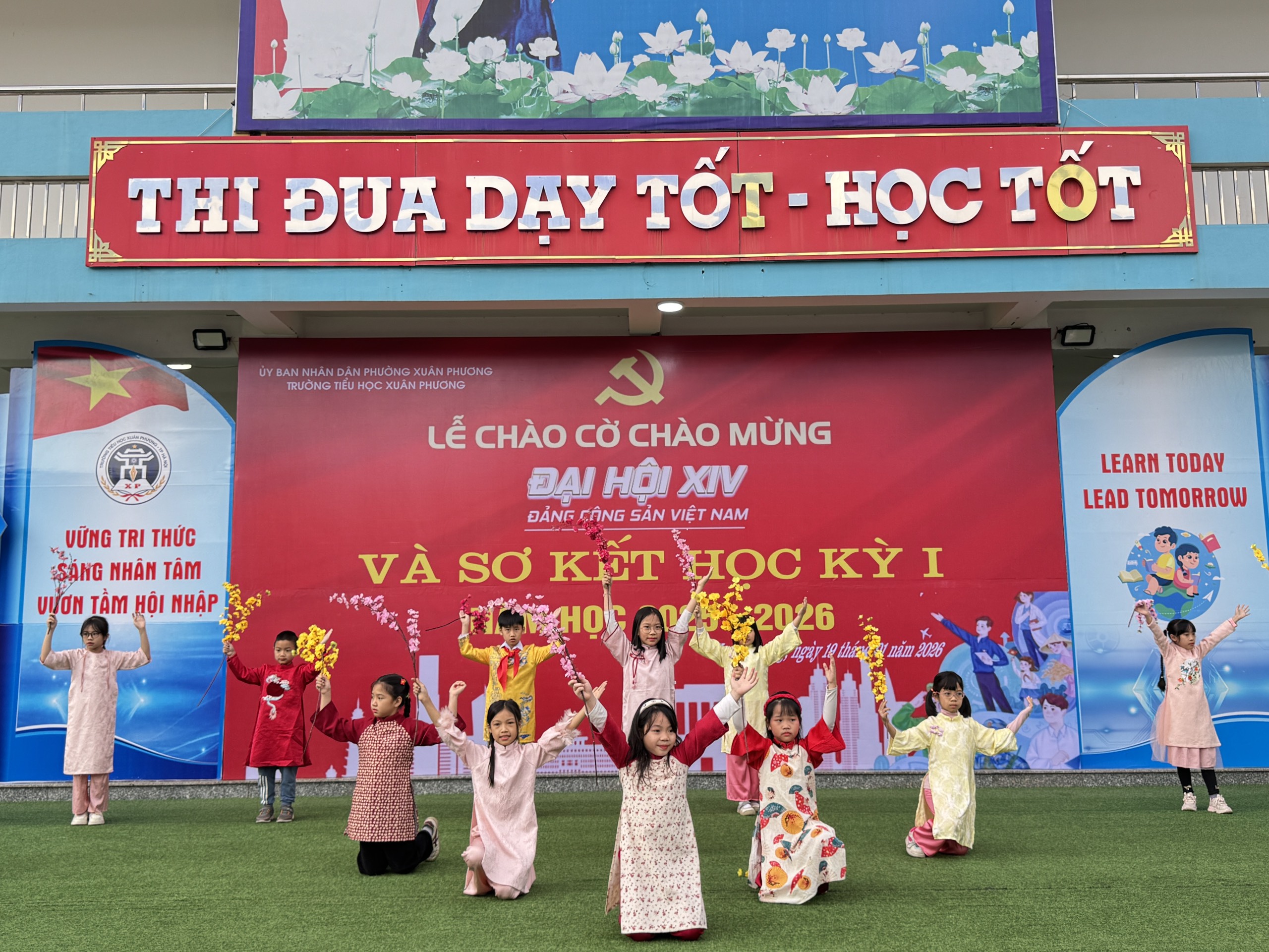 Trong không khí thi đua sôi nổi của toàn Đảng, toàn dân và toàn quân chào mừng Đại hội đại biểu toàn quốc lần thứ XIV của Đảng, sáng ngày 19/01/2026, trường Tiểu học Xuân Phương đã long trọng tổ chức Lễ chào cờ chào mừng Đại hội đại biểu toàn quốc lần thứ XIV của Đảng Cộng sản Việt Nam và Sơ kết Học kì I năm học 2025 – 2026.