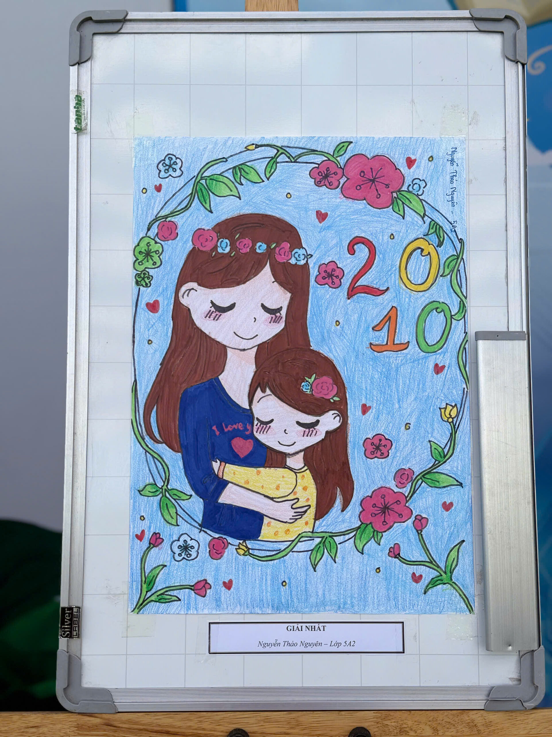 Trong tiết Sinh hoạt dưới cờ, nhà trường đã tổ chức trao thưởng cho các em học sinh đạt giải trong Cuộc thi vẽ tranh, ghi nhận sự cố gắng, sáng tạo và niềm say mê nghệ thuật của các em. Những bức tranh với nét vẽ hồn nhiên, giàu cảm xúc đã thể hiện tình yêu thương, lòng biết ơn sâu sắc của học sinh dành tặng Mẹ và Cô – những người phụ nữ đáng kính trong cuộc sống.