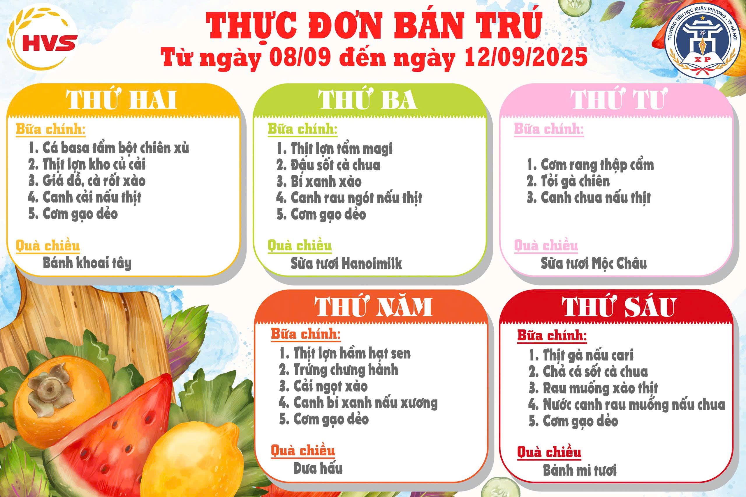 Thực đơn bán trú Tuần 29