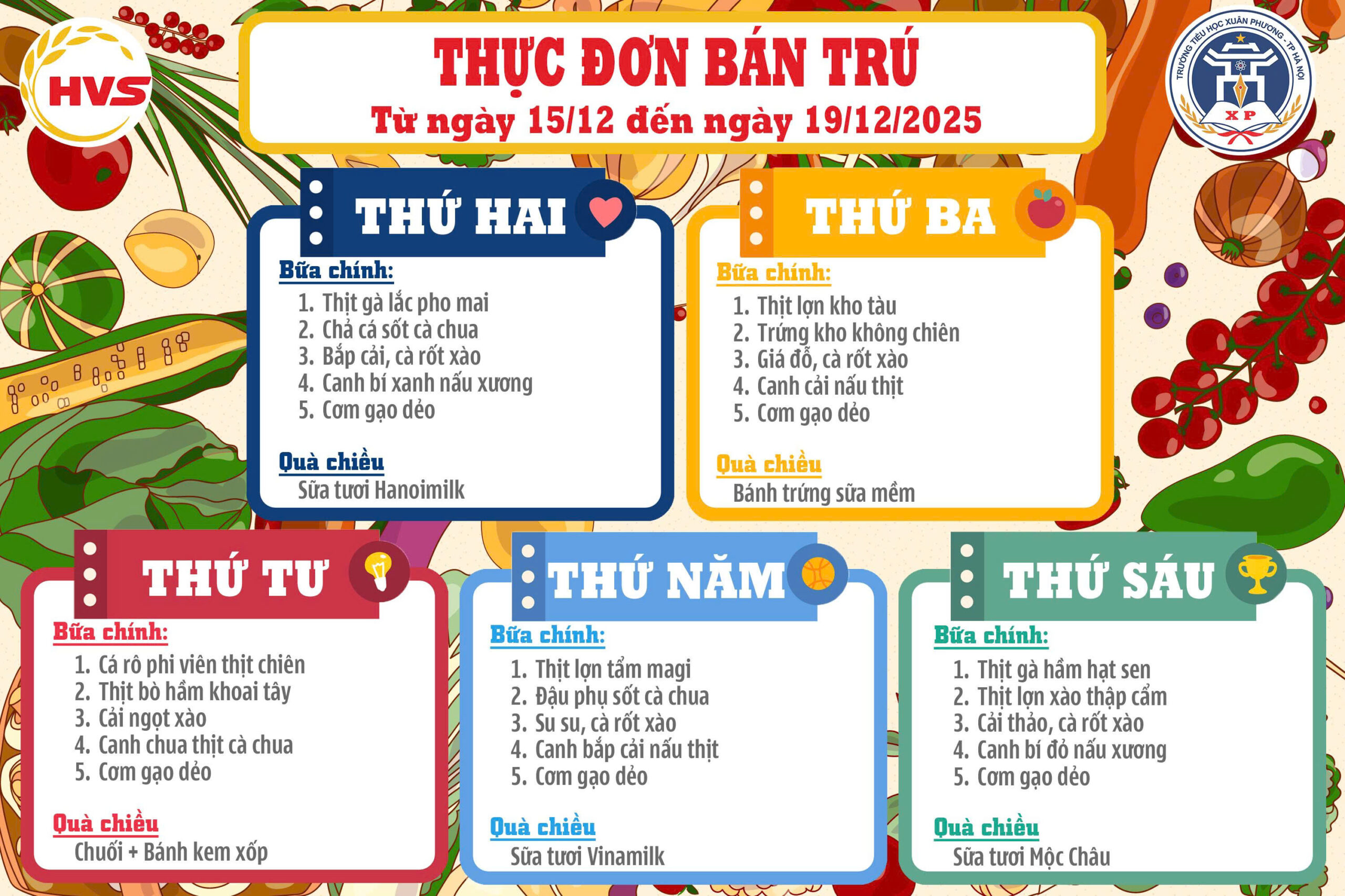 Thực đơn bán trú Tuần 15