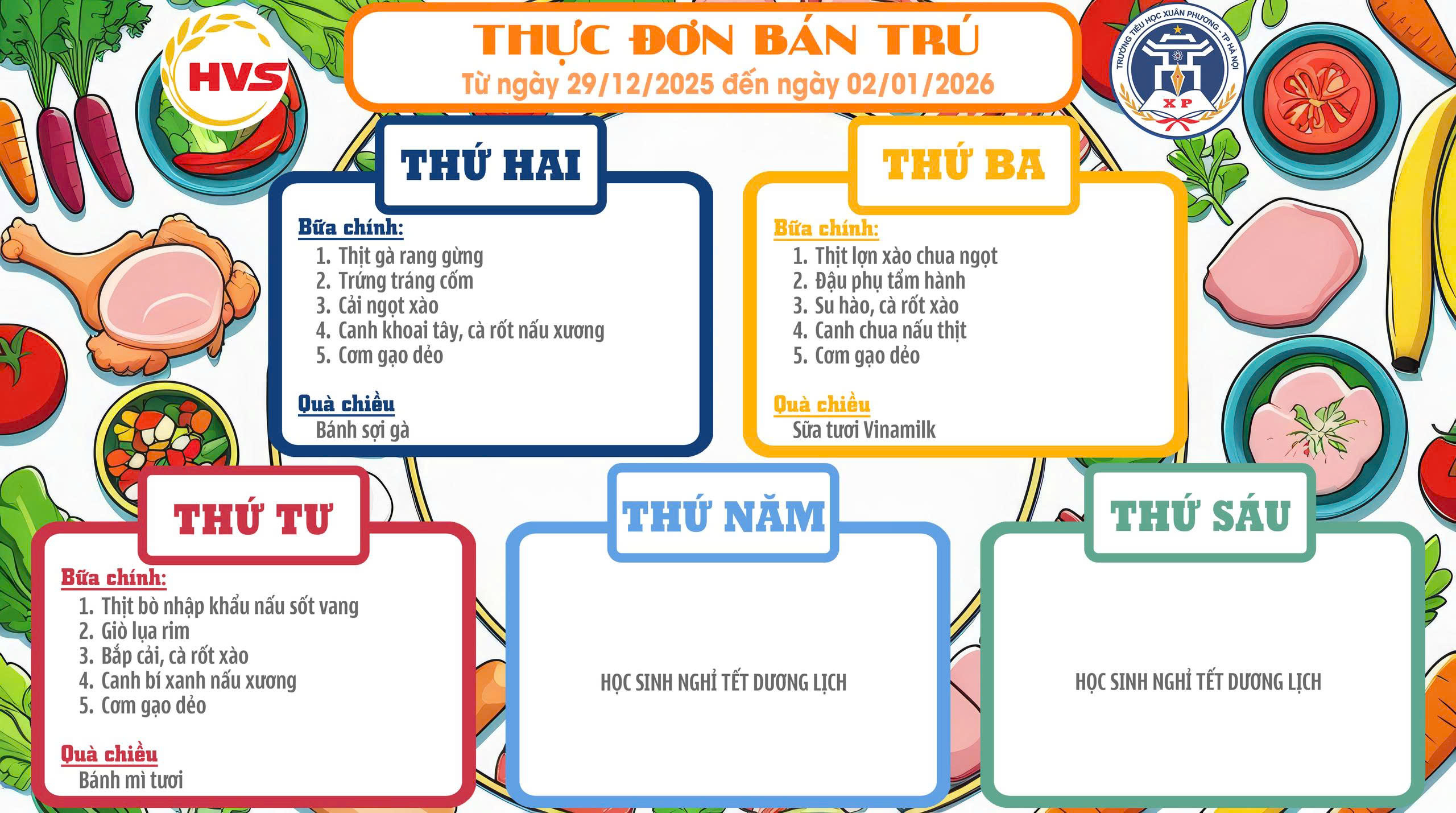 Thực đơn bán trú Tuần 29