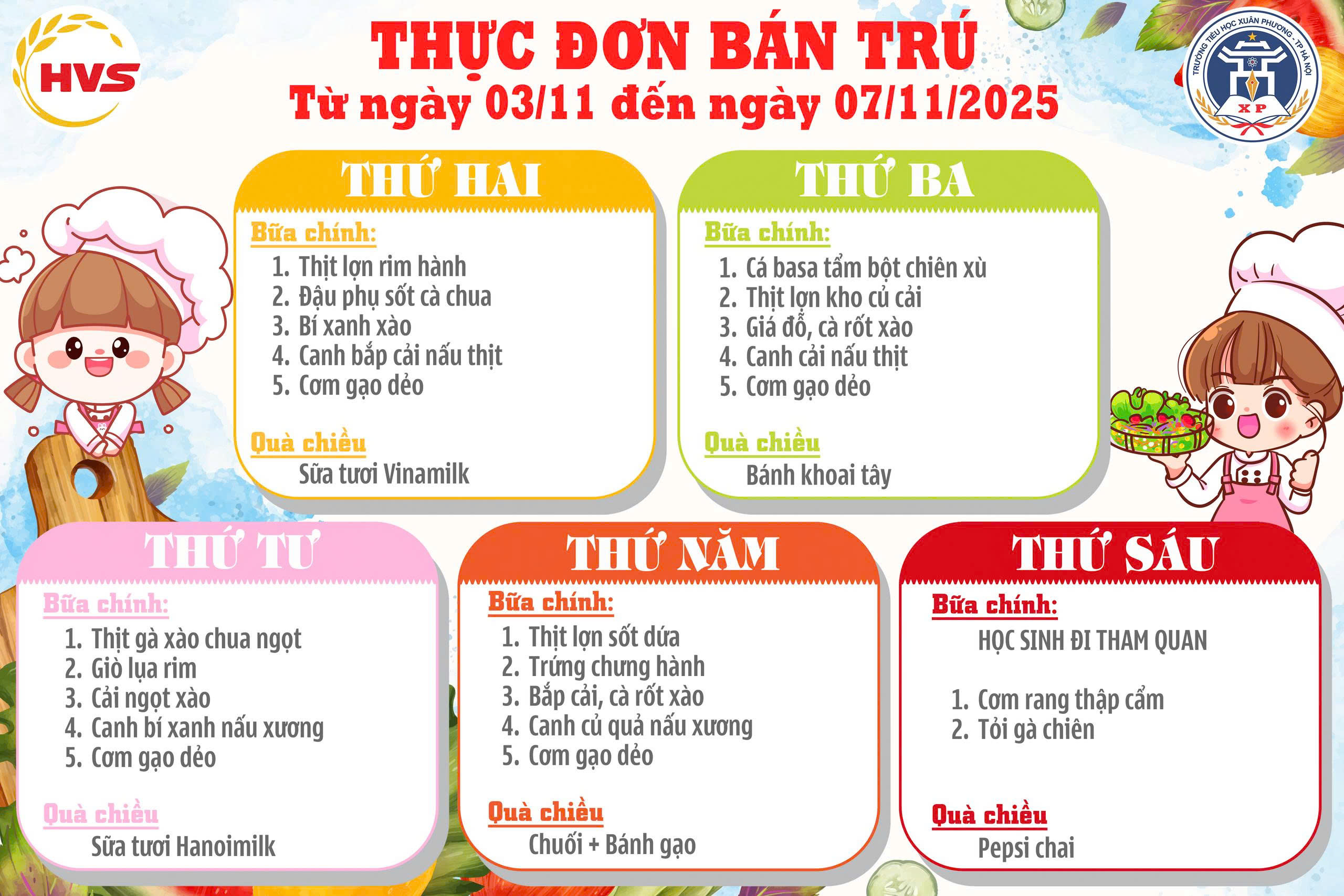 Thực đơn bán trú Tuần 27